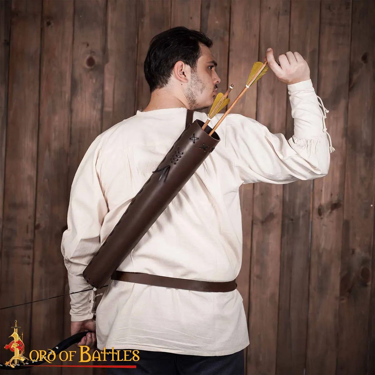 Step into a realm of adventure and excitement with our Classic Medieval Fantasy Leather Quiver, a true homage to the enchanting world of archery. Picture yourself as a noble Elf archer, skillfully wielding your bow and unleashing a flurry of arrows onto formidable foes such as orcs and Uruk-hai. Our quiver embodies this rich imagery, designed to enhance your immersive experience in LARPing or simply as a stunning piece for your fantasy collection.