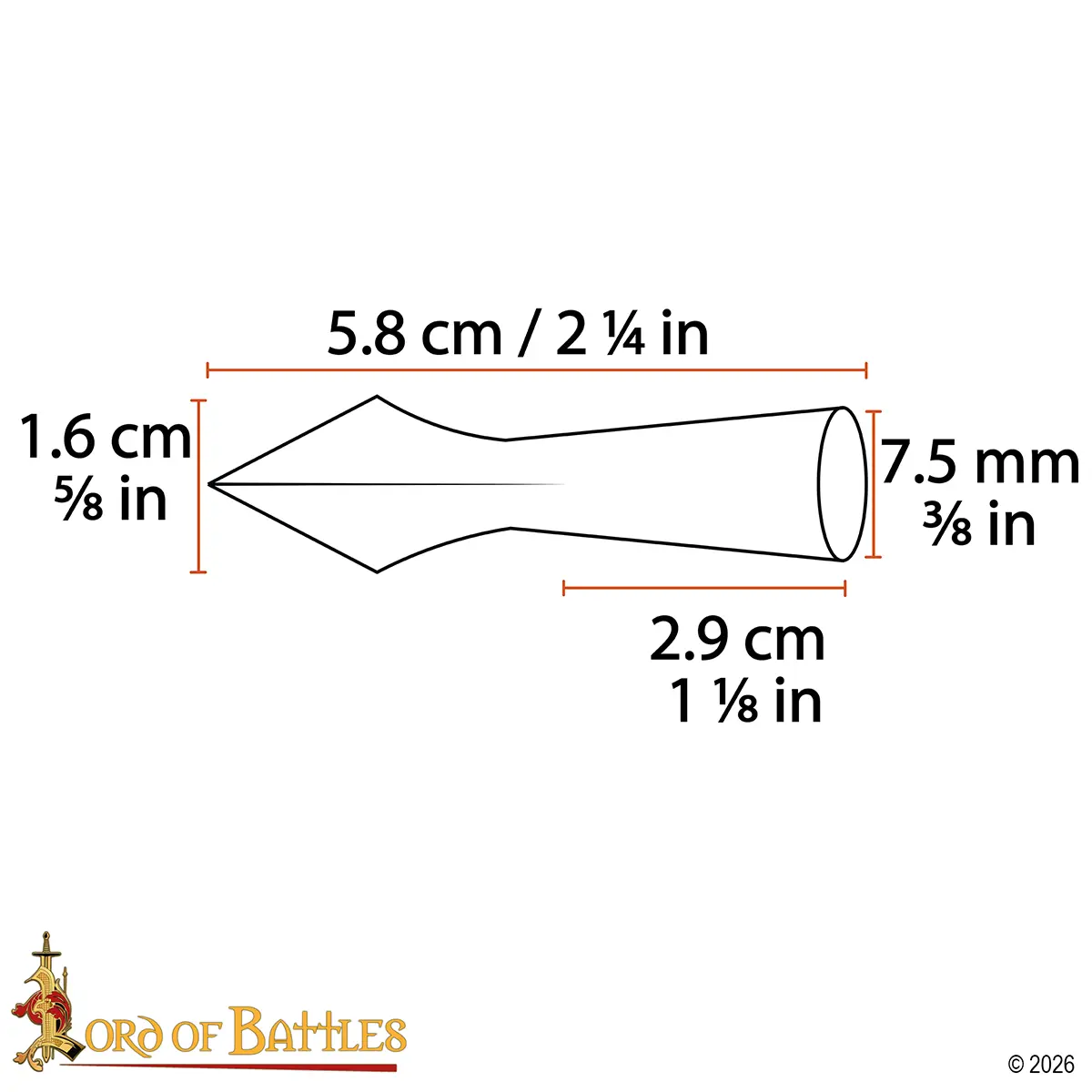 It has a socketed base that fits securely onto wooden shafts. This makes it suitable for DIY arrow making, display, or collection. The design ensures a stable fit when mounted properly.