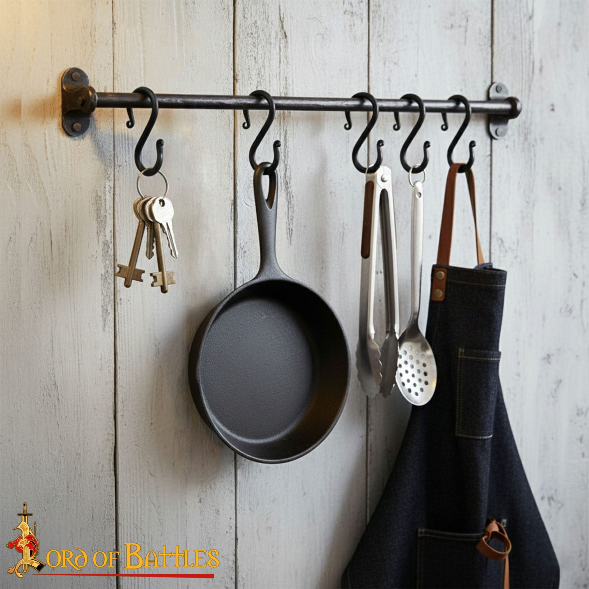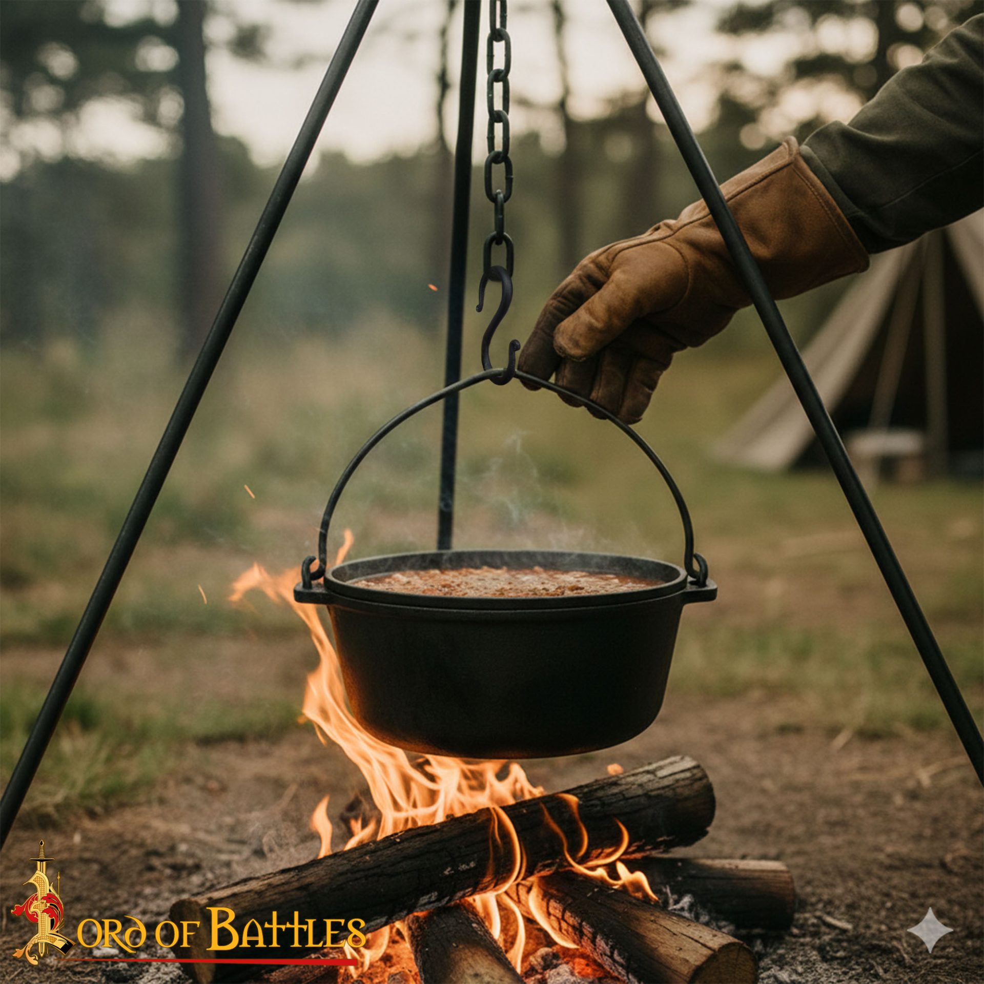 Their strong, solid-iron build ensures long-lasting durability—whether you’re cooking over a medieval-style campfire, outfitting a rustic kitchen, or setting up a practical outdoor cooking station. The oil-black finish not only adds a protective layer but also enhances their rugged, vintage look.