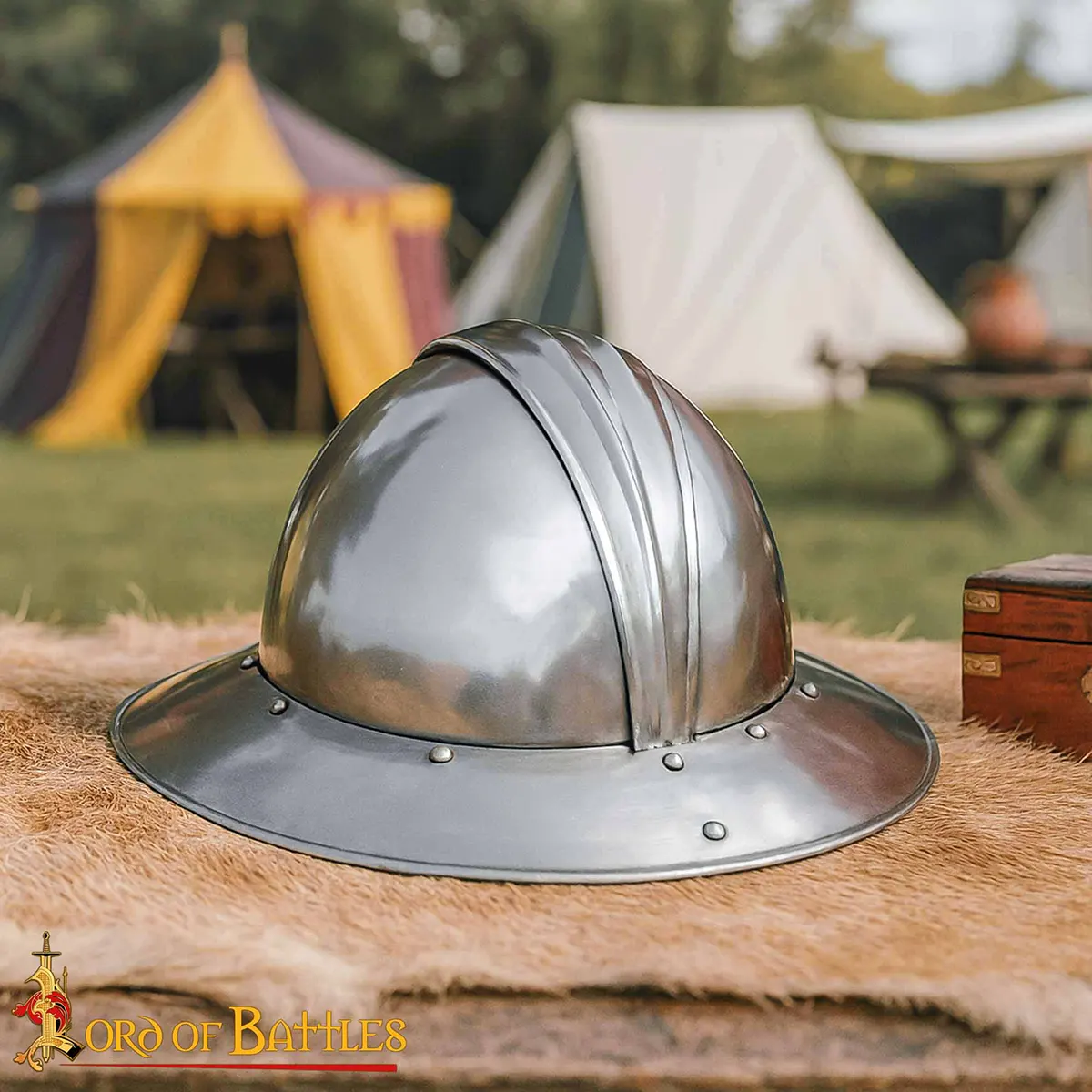 Also called the Medieval kettle hat, this style is also known historically as the medieval kettle helmet or chapel de fer. It was liked for its simple design and high effectiveness, and it is one of the most recognizable styles of medieval helmets. The helmet’s shape also made it suitable as a practical war hat for use in active conditions.