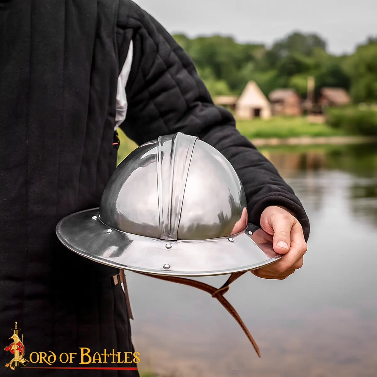 Medieval Steel Infantry Kettle Hat – War Hat with Leather Liner: This 18 gauge steel kettle hat helmet is a reproduction of one of the most practical and used helmets of medieval Europe. Famous for its broad and sloping brim, this helmet was shaped to protect soldiers from arrows, stones and downward blows.
