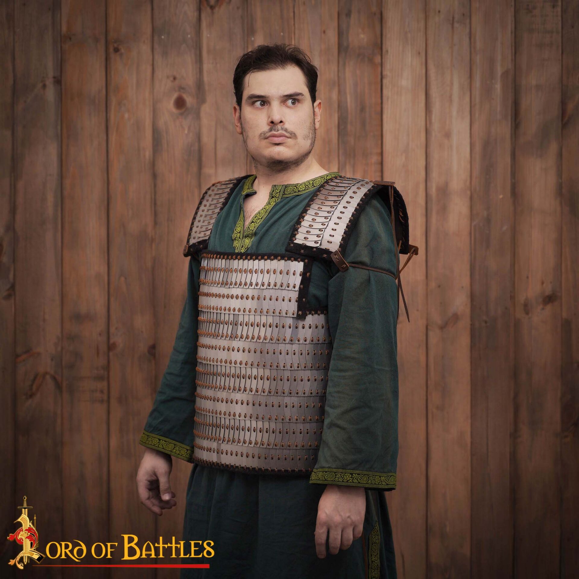 This Medieval Lamellar Plate Armor Cuirass recreates one of the most iconic armor styles worn across Scandinavia, Byzantium, and Central Asia. Known for its flexibility and strength, lamellar armor offered warriors a balance of protection and mobility unmatched by solid plate.