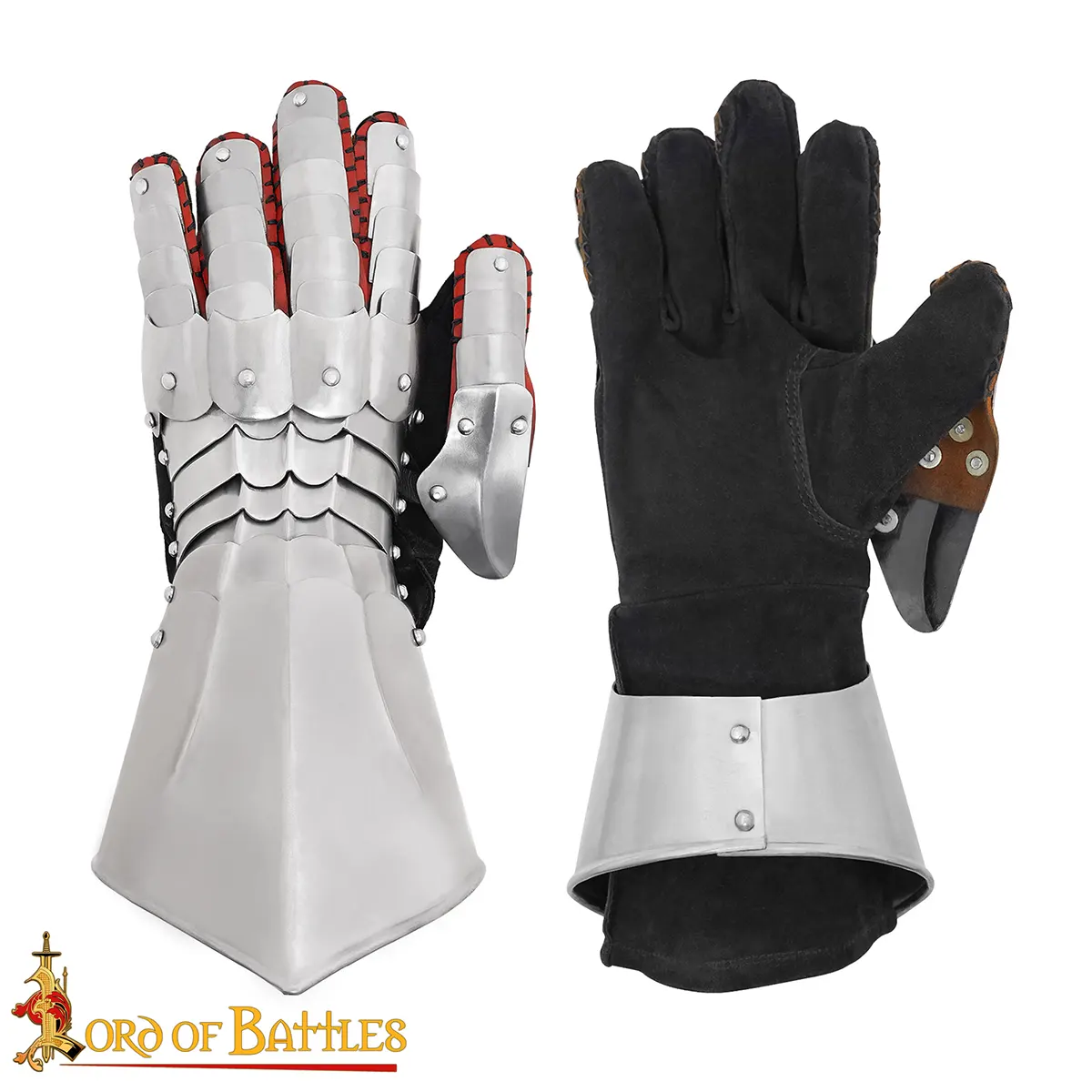 Comfort is as important as protection. That’s why these gauntlets are lined with suede leather and fitted with adjustable straps, giving a secure and comfortable fit even during long wear. At approx. 2 kg per pair, they offer the perfect balance of strength and mobility, making them ideal for combat, reenactments, or display.