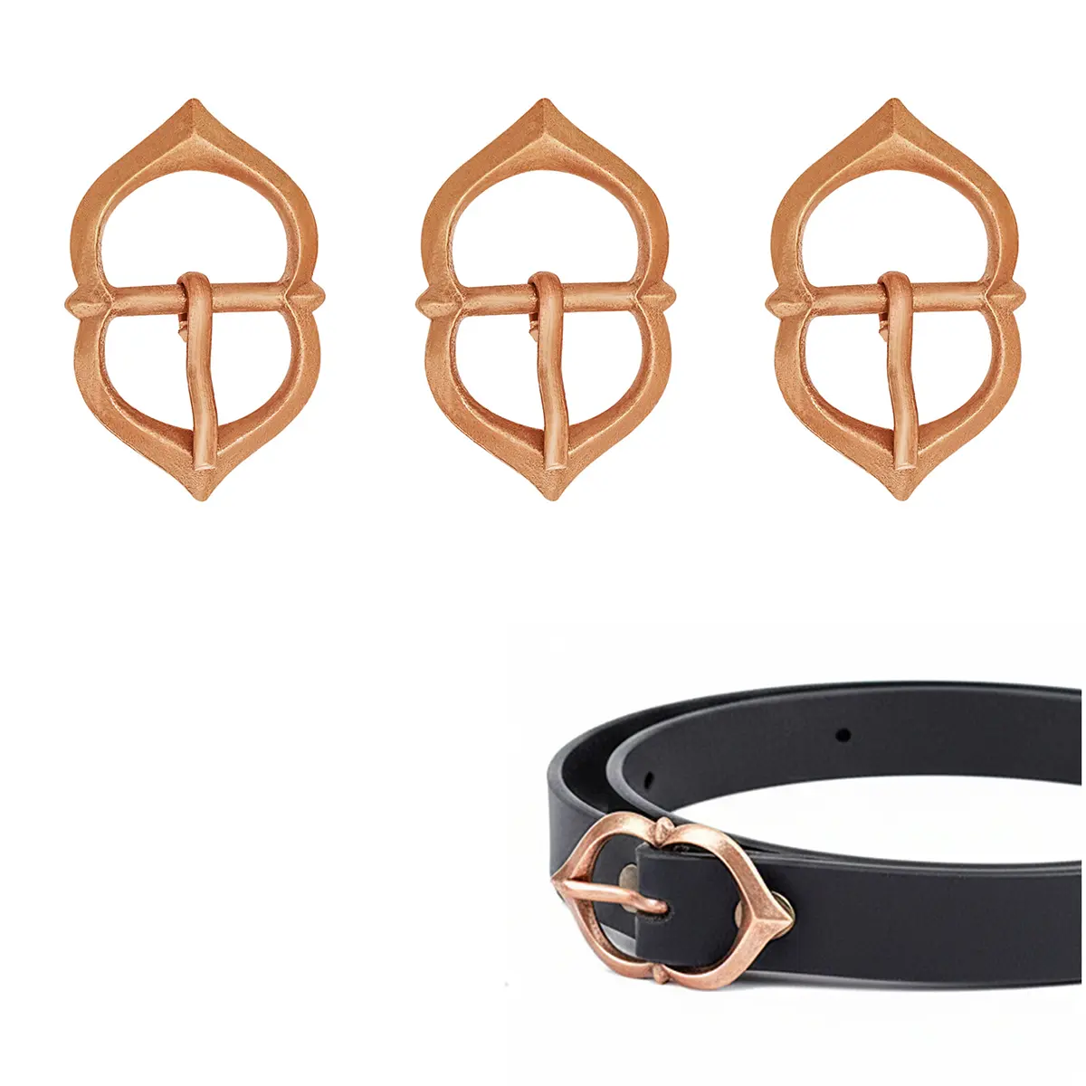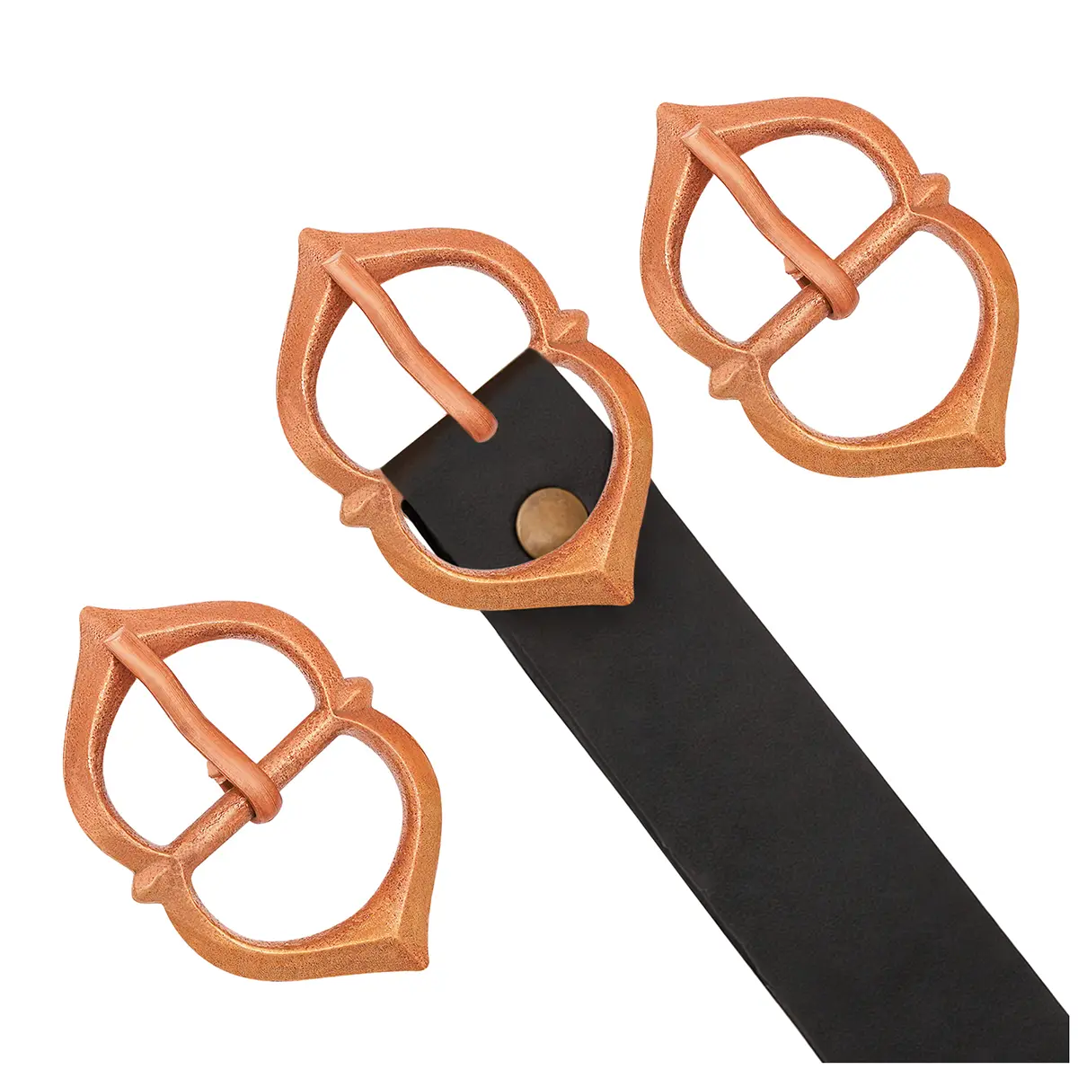 Its elegant, leaf-shaped frame and gently tapered pin give it both charm and practicality. Designed for belts up to 1.5 cm wide, it’s the perfect size for fastening pouches, securing straps, or adding a subtle but authentic accent to light belts.