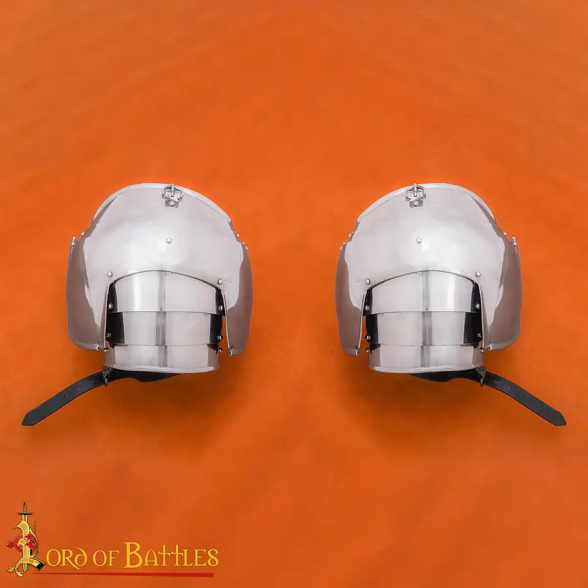 Craftsmanship is at the heart of these pauldrons. Each piece is handcrafted with precision by skilled artisans who understand the importance of both form and function in historical armor. The use of 16 gauge mild steel makes these pauldrons incredibly sturdy and durable, designed to withstand the harshest conditions of battle while ensuring they remain a reliable companion for years to come. Their resilience means you can engage in re-enactments, live-action role-play, or simply display them as a tribute to the art of medieval armor without fear of wear and tear.