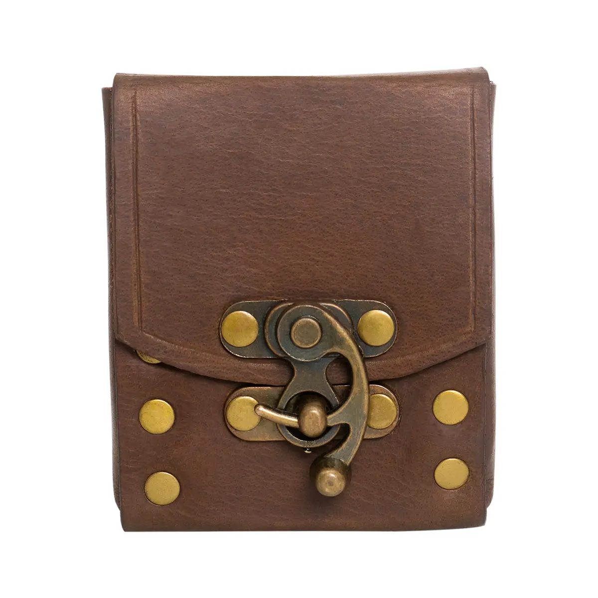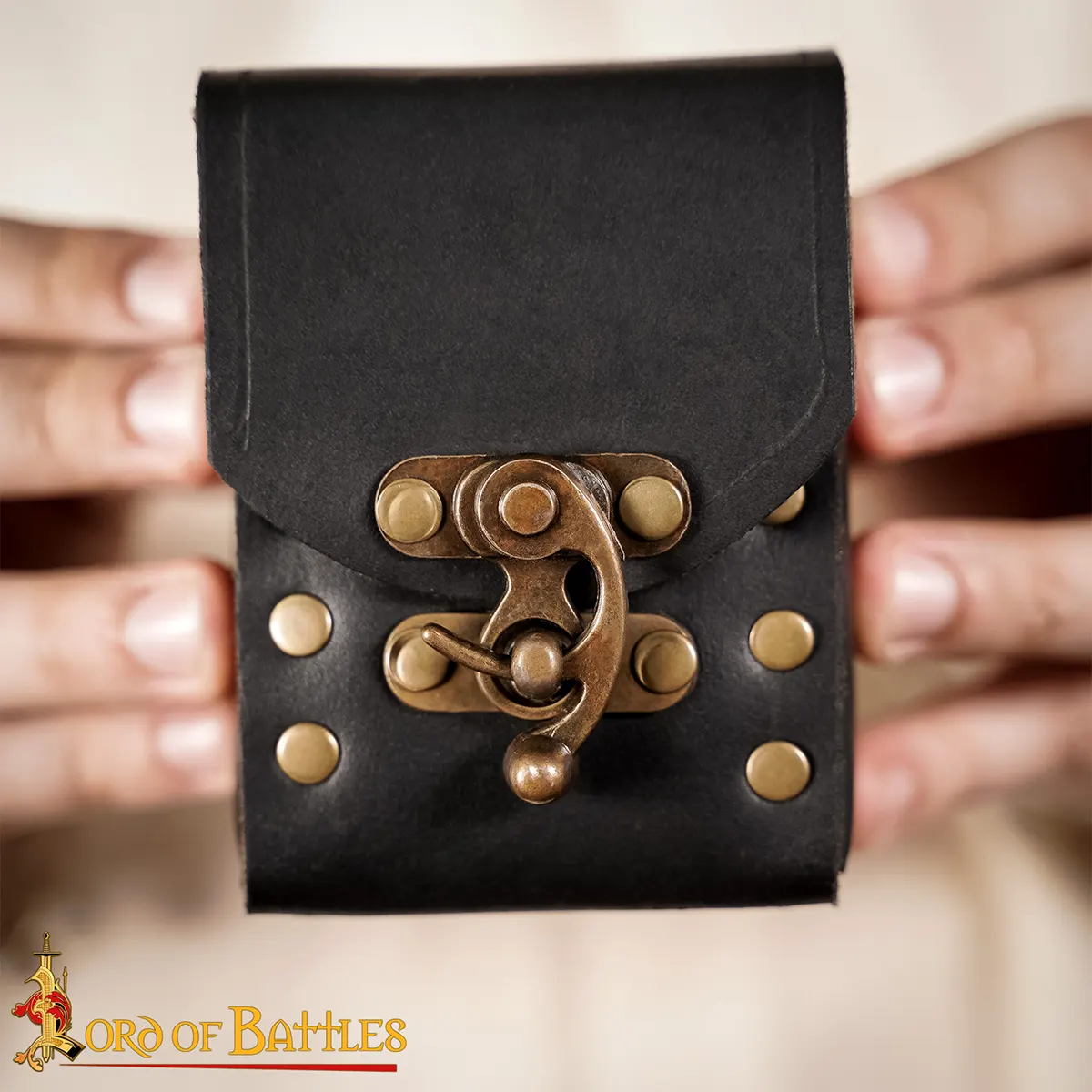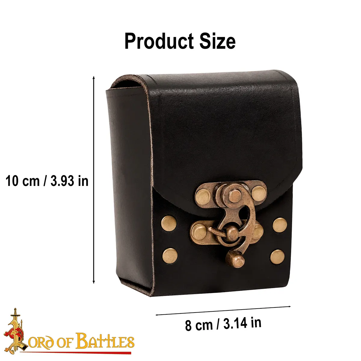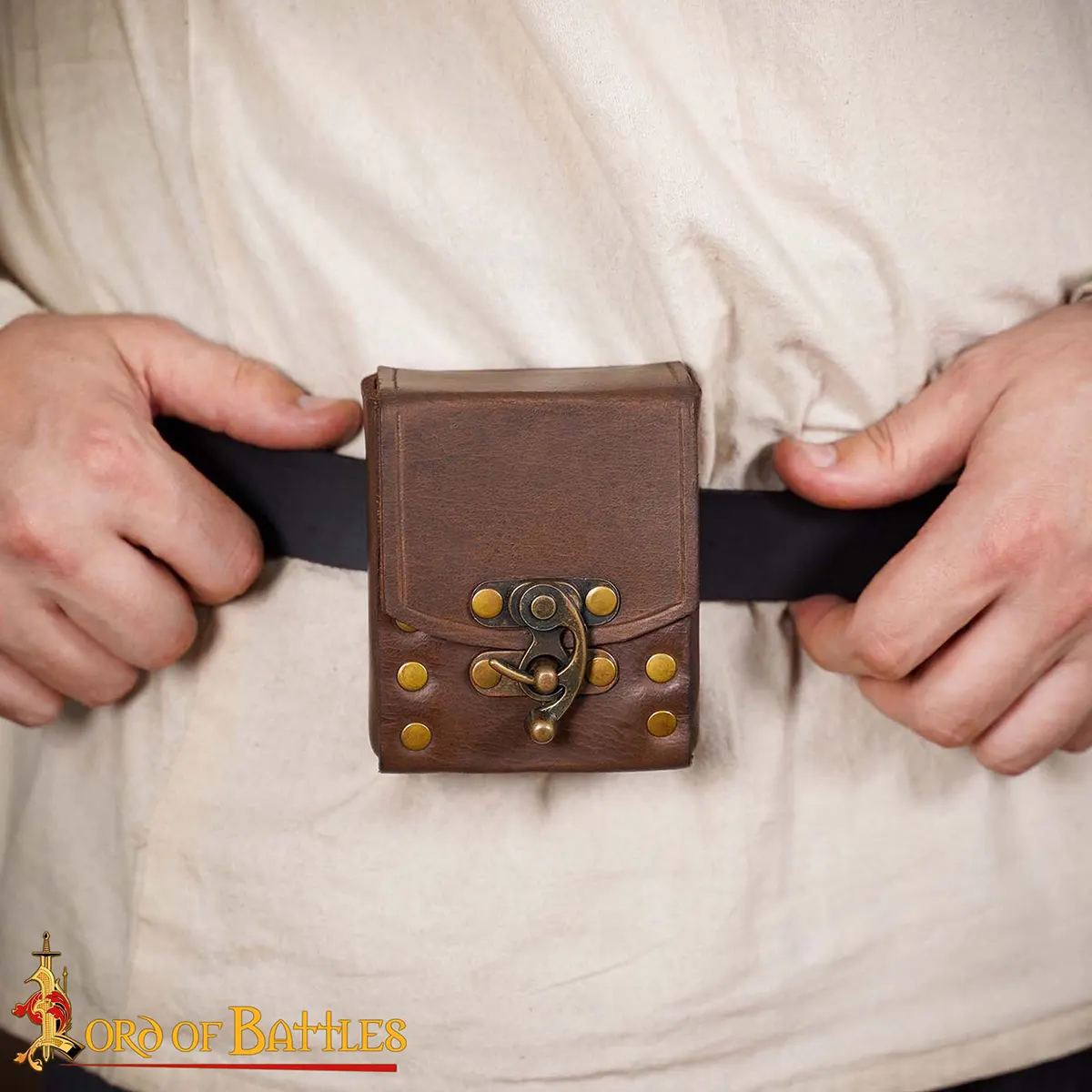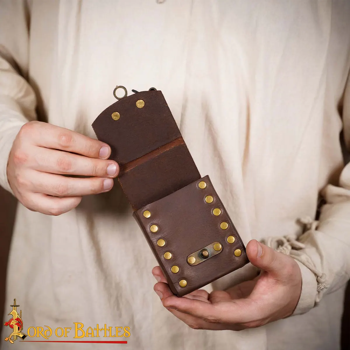 Carry your essentials the medieval way with this handcrafted Medieval Leather Belt Pouch, a faithful tribute to the practical yet elegant designs worn by merchants, travelers, and artisans of the late Middle Ages. Fashioned from sturdy 3 mm leather, it holds its shape while enduring years of service. The antique brass swing clasp not only secures your belongings but also adds a touch of historic charm.
