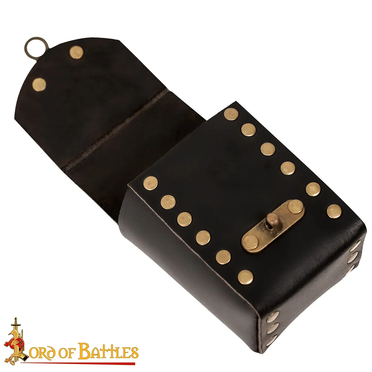 Stress points are strengthened with brass rivets, ensuring this pouch is built for reliability. Compact yet functional, it offers just the right space for coins, keys, wax seals, or keepsakes — echoing the very purpose such pouches once served. Its rectangular body with fitted flap was a popular choice in the 14th and 15th centuries, striking the perfect balance between security and easy access.