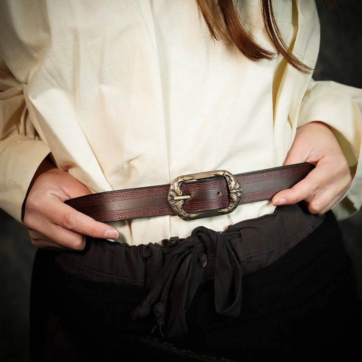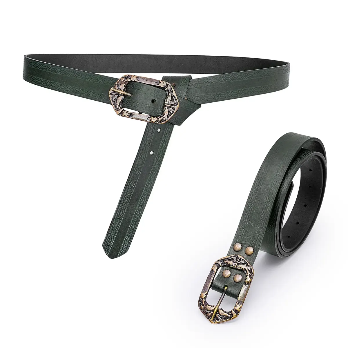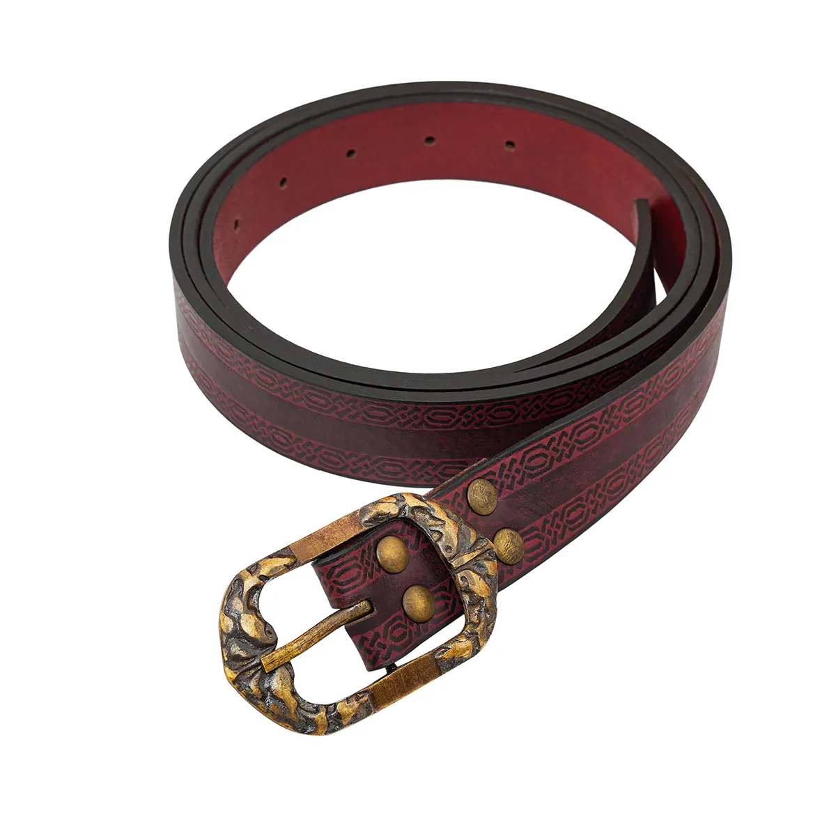 This belt truly exceeded my expectations! The moment I pulled it from the box, the craftsmanship was evident. The embossed design adds a unique touch, and the rich leather feels sturdy yet comfortable. I wore it during a LARP event, and it complemented my costume perfectly. A few friends complimented the antique brass buckle, which really stands out and enhances the vintage vibe. Not only does it look great, but it’s also incredibly durable; I can tell that it’s built to last. The belt adjusted easily to my size, maintaining its sleek look without any hassle. As I walked around, I received several compliments, which just made the experience even better. Whether for everyday wear or costume events, this belt truly delivers on both function and style!