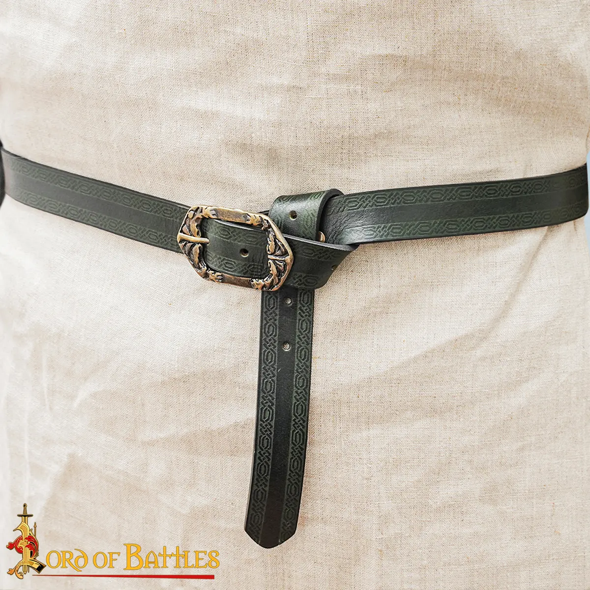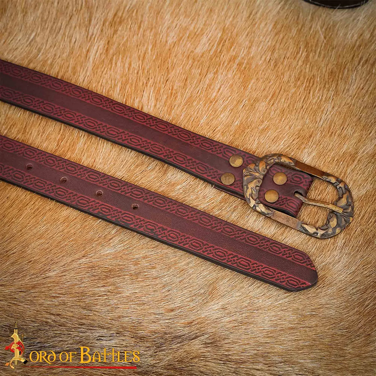 This handcrafted leather belt exceeded my expectations! I wore it during a weekend LARP event, and it truly added to my character’s authenticity. The antique brass buckle is not just stylish but very sturdy, withstanding all the movement during the battle scenes. The embossed design caught many compliments and looked fantastic even after long hours of wear. I was particularly impressed by the durability; it held up perfectly without any signs of wear. It’s versatile enough to use daily, making it a great investment for any wardrobe. Highly recommended!