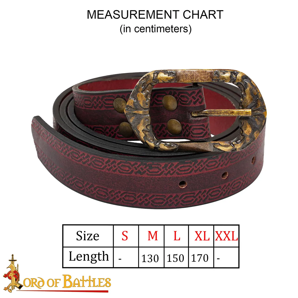 This handcrafted leather belt is absolutely fantastic! The quality is impeccable; the embossed design is striking and adds a unique flair to any outfit. I ordered the 150 cm, and I was pleasantly surprised at how accurate the sizing was. It fits perfectly around my waist without any awkwardness. The antique brass buckle feels sturdy and complements the leather beautifully. I wore it to a LARP event, and it not only served a practical purpose but also made my costume stand out. After multiple uses, it still looks as good as new. This is definitely an investment I’m proud of!