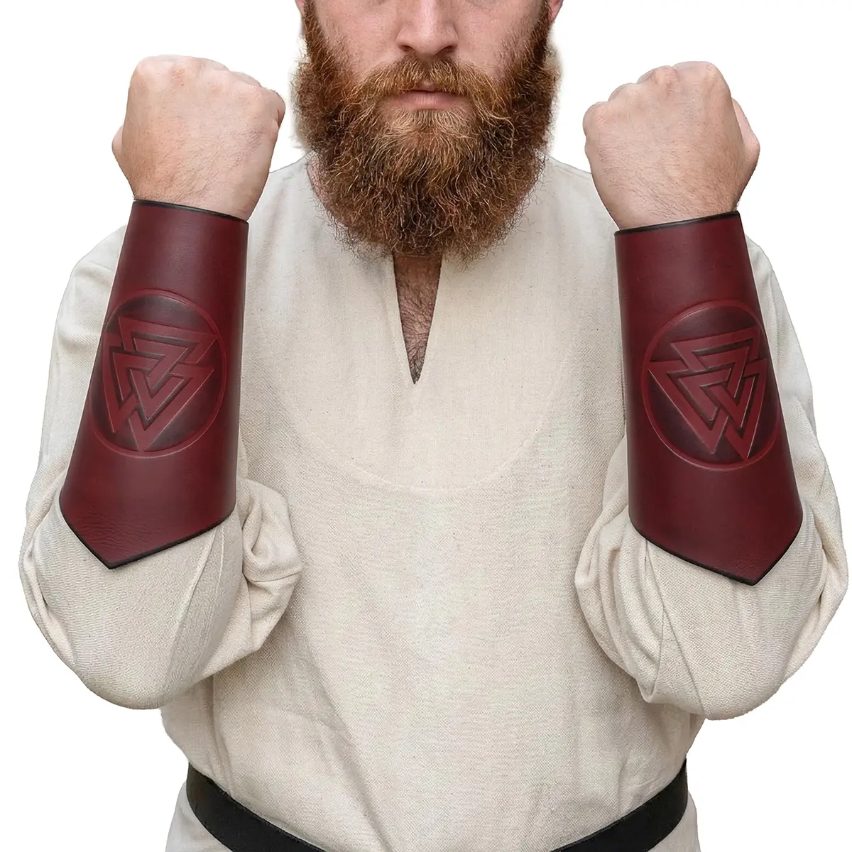 Absolutely thrilled with my purchase of the Warrior of the Realm Leather Bracers! They arrived much faster than I anticipated, just two days after ordering, and the packaging was excellent—sturdy and protective. The bracers themselves looked incredible right out of the box. The rich leather and the detailed Valknut symbol truly capture the essence of craftsmanship. After trying them on, I appreciated the adjustable leather cords that provide a perfect snug fit. They feel comfortable and durable, exactly what I need for my upcoming renaissance fair. I’ve worn them several times since, and the compliments just keep coming! These bracers have exceeded my expectations, both in functionality and style. Highly recommend for anyone looking to embody their warrior spirit!