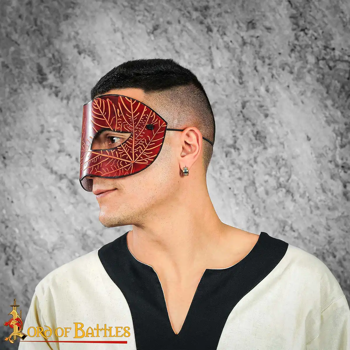 Carefully handcrafted from ethically sourced leather, each mask embraces the artistry of skilled artisans dedicated to producing only the finest quality accessories. The rich Crimson hue adds a touch of elegance and sophistication, making it an ideal choice for those looking to stand out in any crowd. The embossed Maple Leaf designs reflect a connection to nature and the changing seasons, perfectly aligning with any fantasy or historical theme.