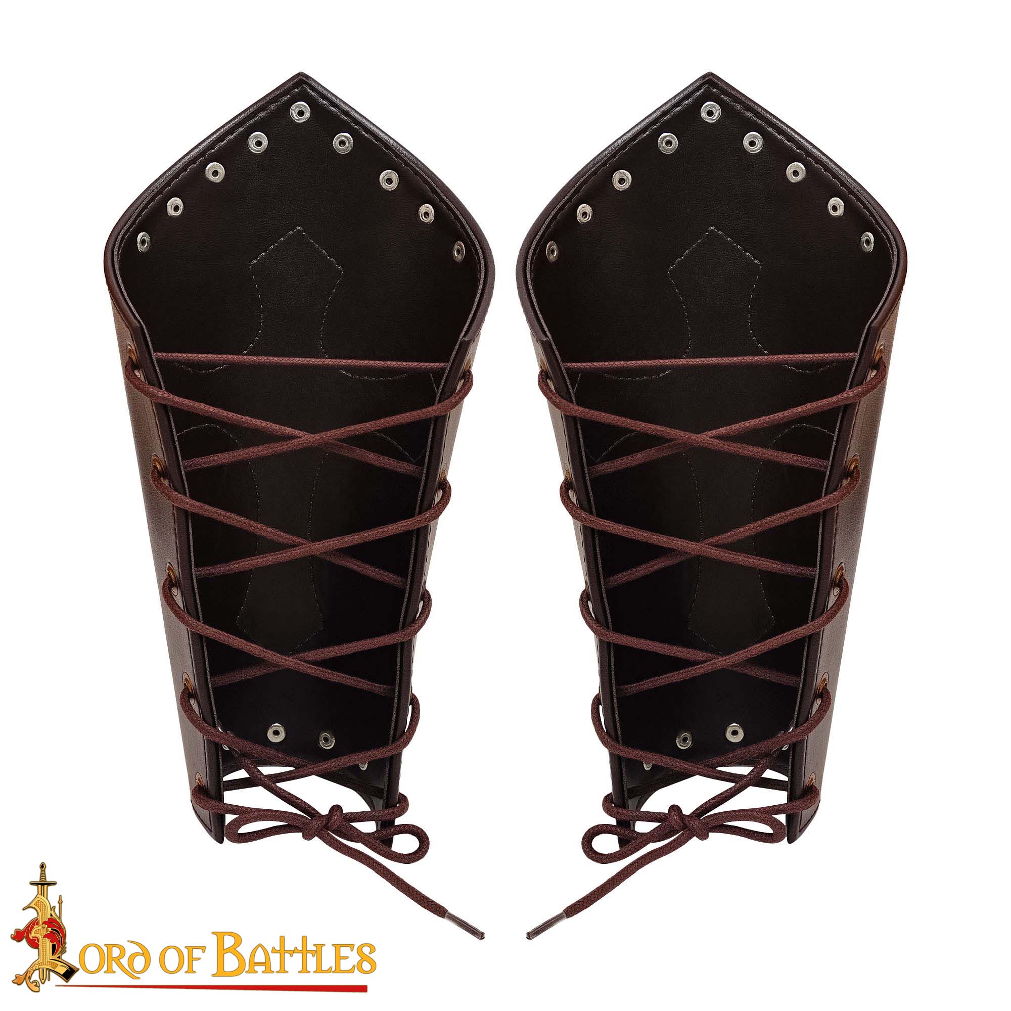 While they are not crafted from real leather, their faux leather construction offers key advantages: lightweight comfort for long hours at LARP or events, resistance to cracking or heavy maintenance option without sacrificing durability or visual appeal. The smooth finish and rich dark tone give them a polished appearance that will hold up use after use.