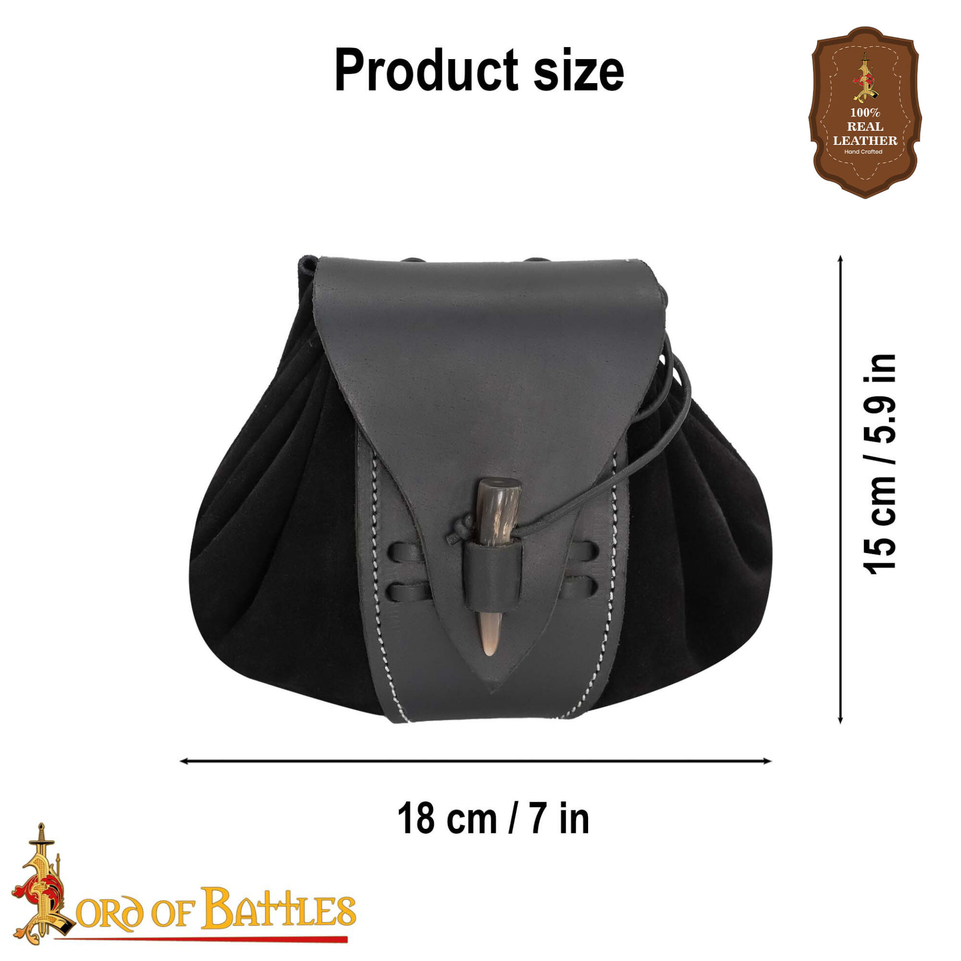 Securing it is a hand-shaped horn toggle, smoothed and polished fastened by a traditional leather loop. This not only offers secure closure but also honors the artistry of handcrafted medieval gear. The rear belt slit allows the pouch to hang just as it did centuries ago—secure at your side