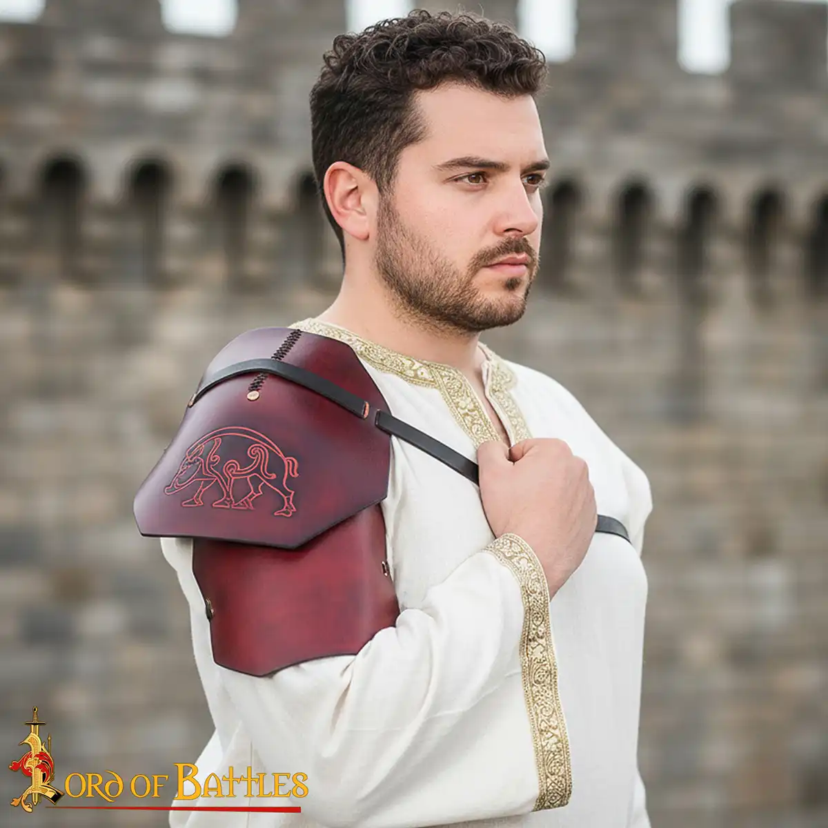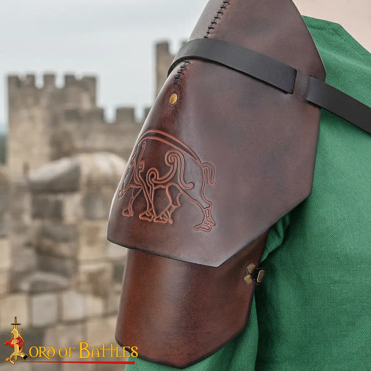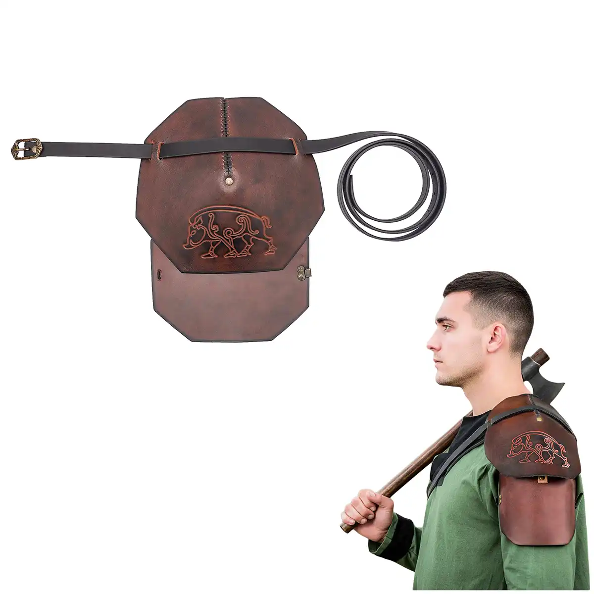 Note: Each pauldron is handmade from natural leather. Small differences in embossing depth, color tone, and finish are normal.