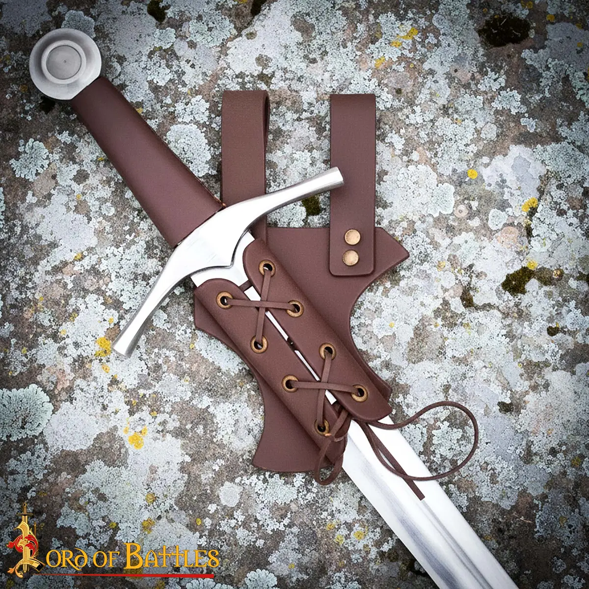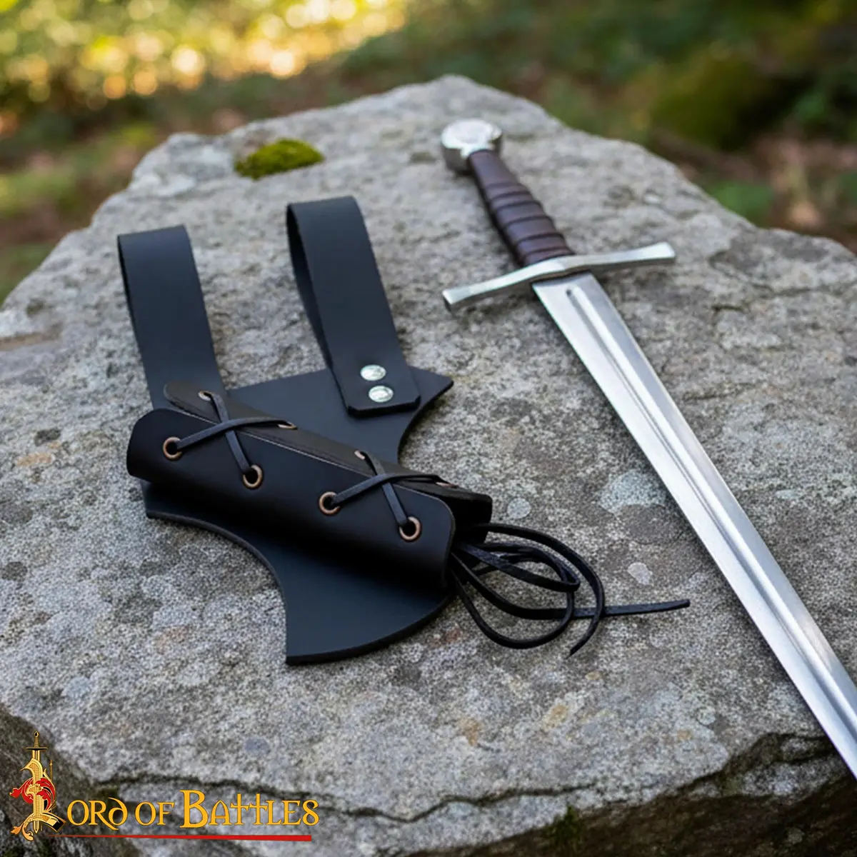 The lace-up sheath design adapts to different blade sizes, making it versatile for short swords and arming swords alike. With its ability to fasten securely onto belts up to 8.6 cm (3.4 in) wide, it pairs effortlessly with a variety of medieval and fantasy outfits.
