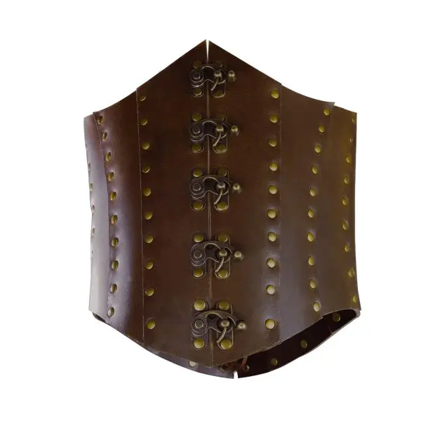 The antiqued pure brass locks not only serve as a simple but effective closure but also add that vintage allure to your look. Every detail, including the antiqued brass rivets, speaks of robust construction, ensuring that you are both fashionable and secure as you embark on your next quest. Whether you’re engaging in LARP, attending cosplay events, or simply dressing up for a themed party, this corset is bound to make you the center of attention.
