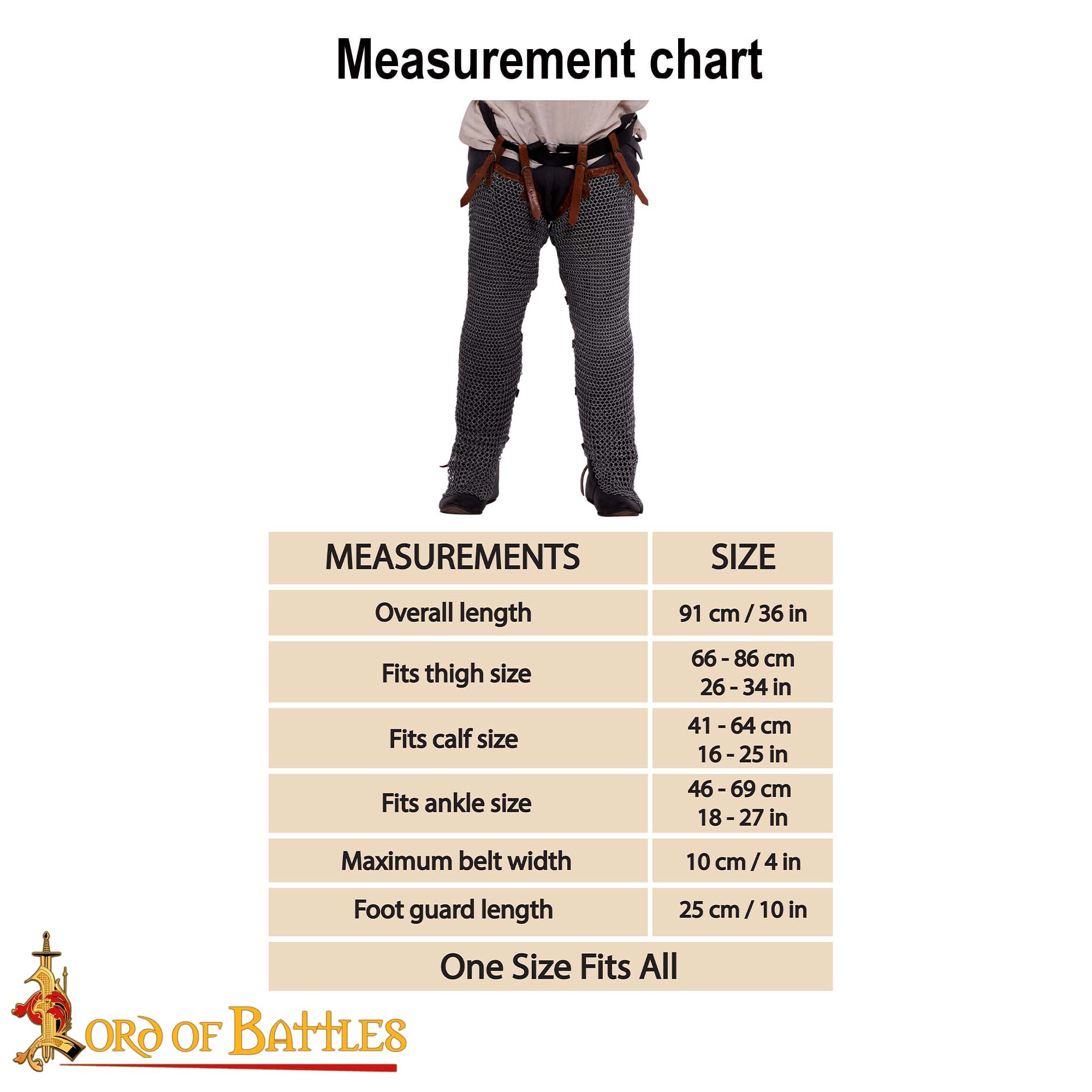 Each pair of Chainmail Leggings is handmade by skilled armorers using traditional methods. Small differences in ring closure or leatherwork are normal and add to the authentic handcrafted character of the armor.