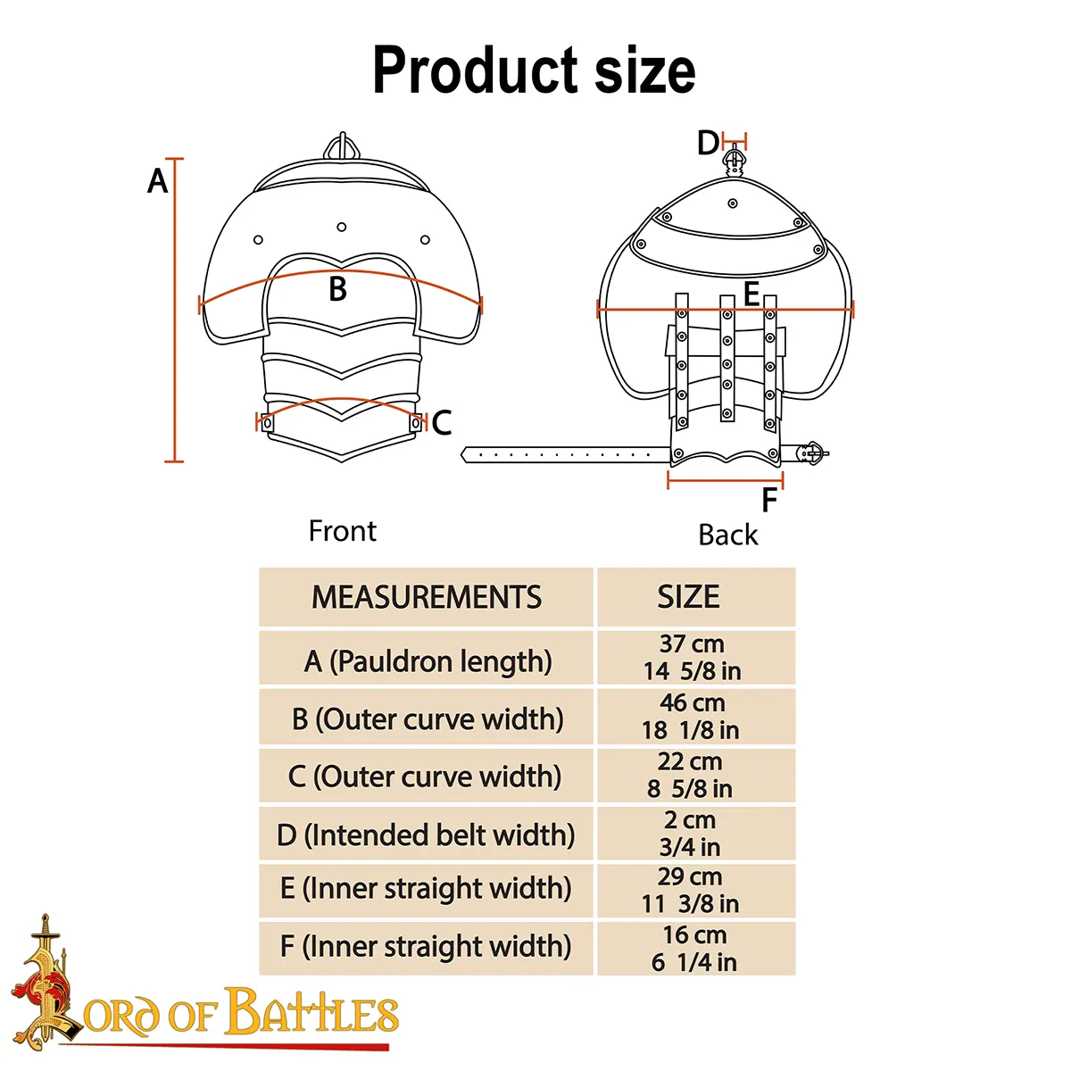 Since each pair of pauldrons is handmade, slight variations in finish, rivet placement, or polish are normal and add to their unique character.