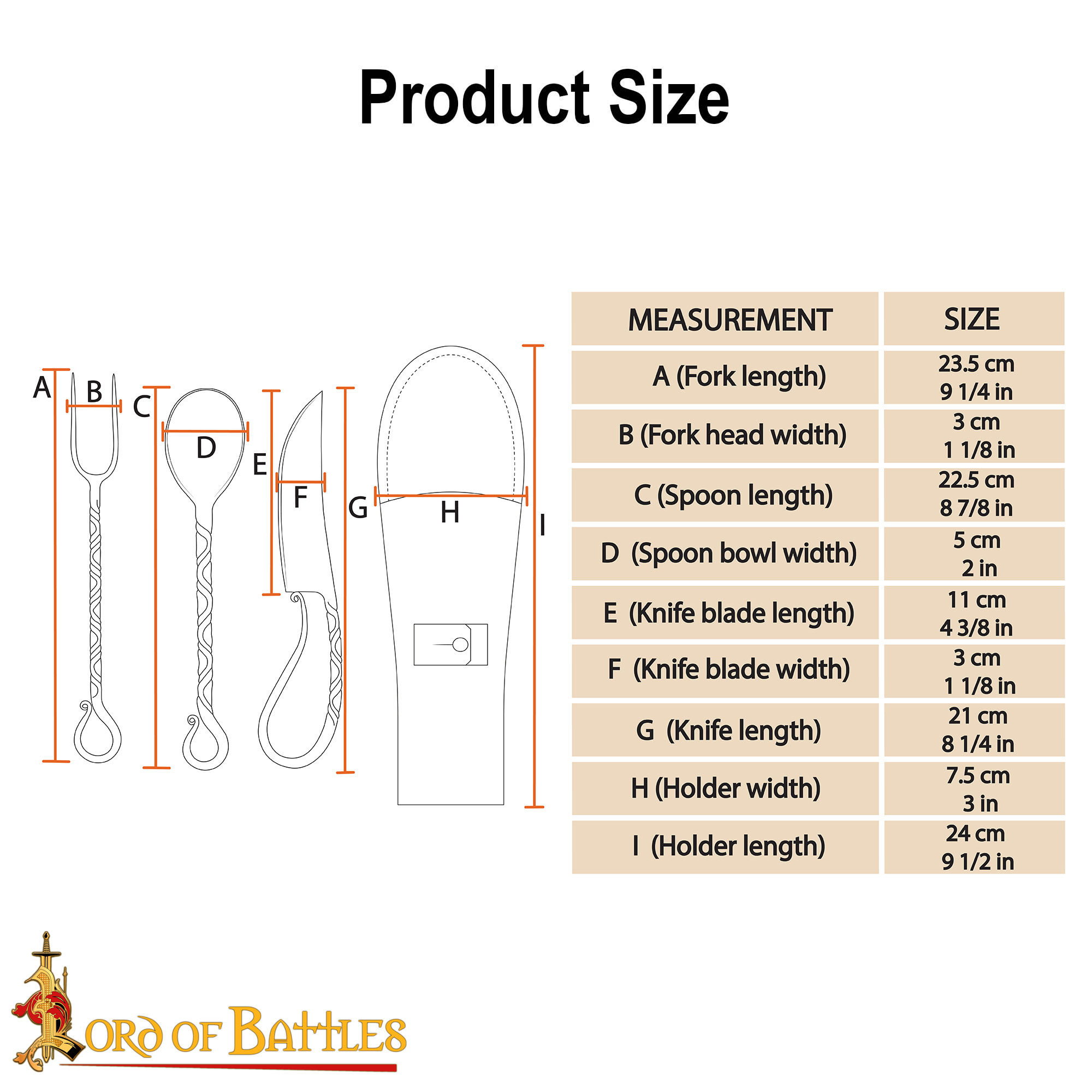 Complete with a sturdy leather belt pouch, this cutlery set can be carried just as Norse travelers, warriors, and merchants once did. Whether used at medieval feasts, LARP events, or rustic outdoor meals, it adds authentic weight, rugged design, and historic presence to the dining experience.