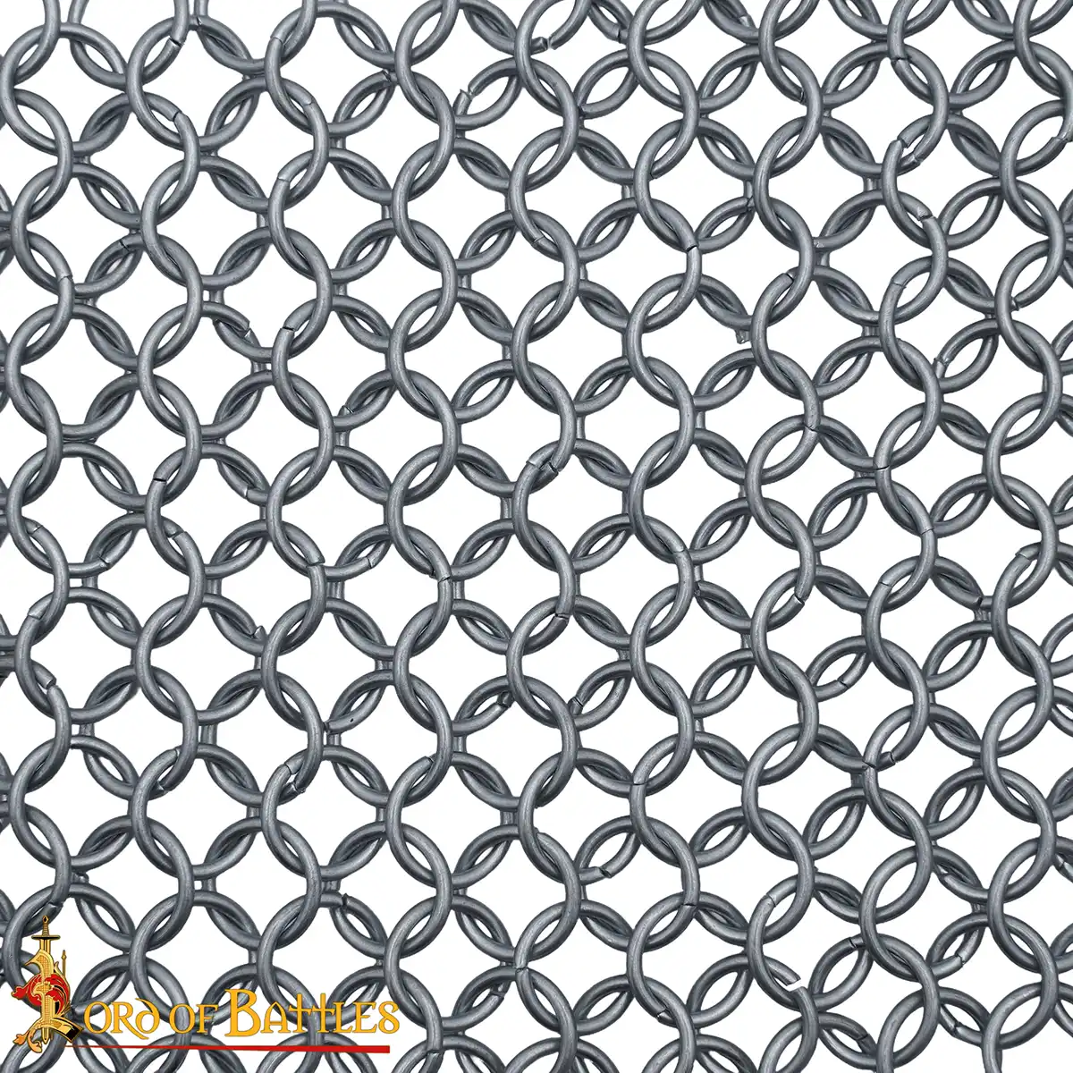 At the heart of this set are the 16 gauge mild steel rings, expertly butted, creating a robust and reliable armor that defies the rigors of combat reenactment. With a diameter of approximately 10 mm, each ring has been carefully crafted to strike the perfect balance between weight and strength. This design not only enhances affordability, making it a popular choice among enthusiasts, but also guarantees flexibility and ease of movement.