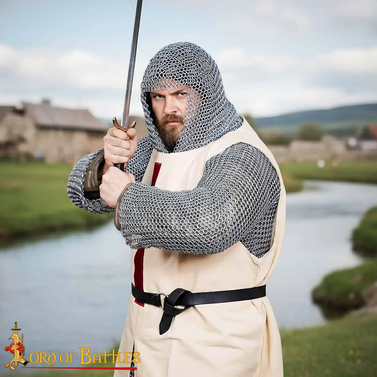 The Medieval Coif and Full Sleeves Shirt truly exceeded my expectations. I wore this ensemble during a recent medieval fair, and it held up beautifully throughout the day. The craftsmanship is evident; each ring feels solid yet surprisingly lightweight, allowing for a full range of motion while wielding my sword. I engaged in several mock battles and, despite the rough play, the chainmail showed no signs of wear or damage. The coif fitted snugly, offering excellent protection while still being comfortable. A roll or two of my sword didn’t rip any seams, which is impressive for chainmail of this quality. I appreciated how the materials were flexible yet durable, making it easy to move without feeling constrained. The shirt’s sleeves allowed me to stay cool under the sun, and I received numerous compliments on its authentic appearance. Plus, getting it on and off was hassle-free; I didn’t struggle at all. All in all, it’s an essential piece for any reenactor or LARP enthusiast. I couldn’t be happier with my purchase!