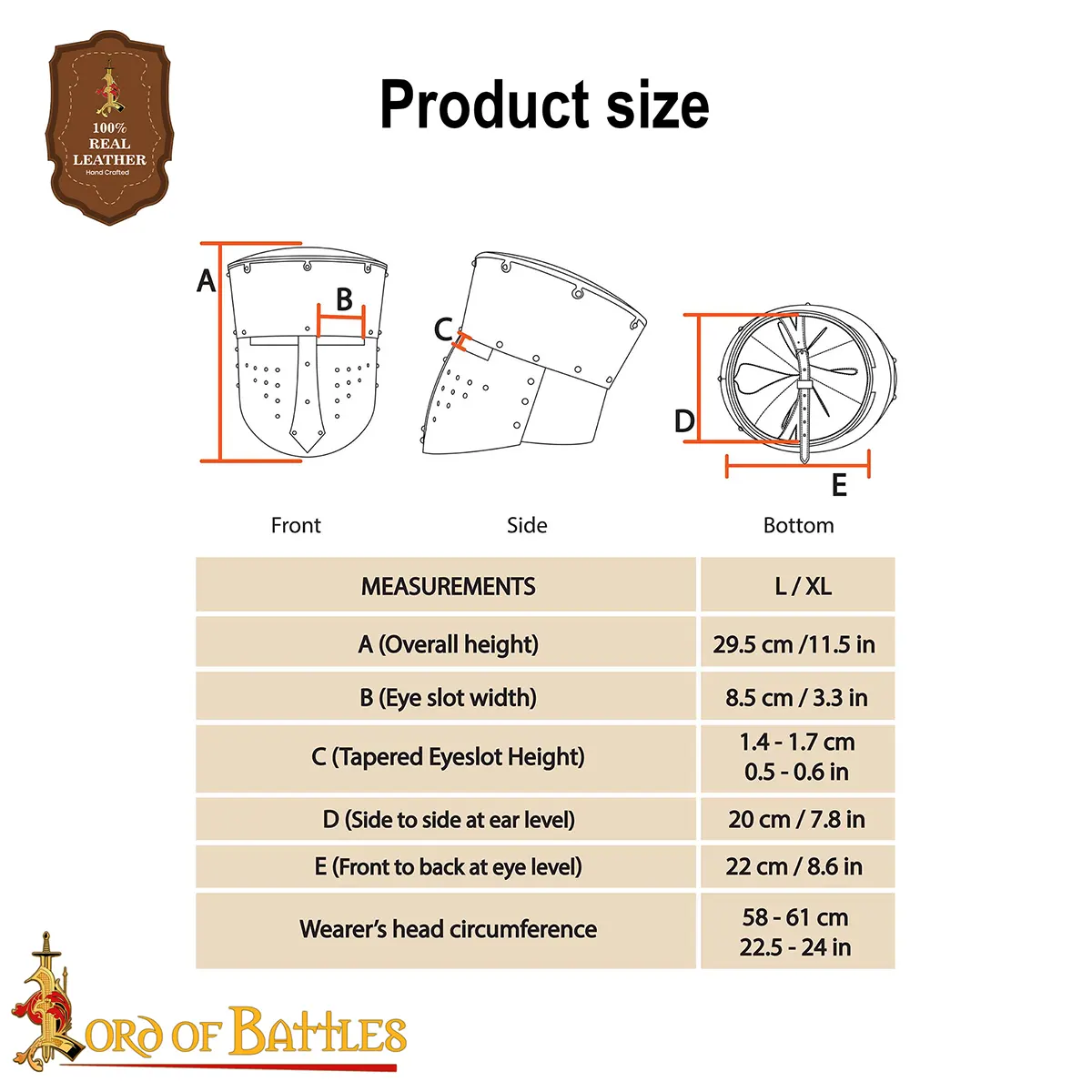Designed thoughtfully, the height of approximately 29.5 cm allows for ample head coverage while maintaining a comfortable fit. The inner measurements are just as crucial; with a depth of 22 cm and a width of 20 cm, paired with eye slits measuring 8.5 cm long, they provide excellent sightlines while protecting your face. The inner circumference of 68 cm enables this helmet to comfortably accommodate most head sizes ranging from 58 cm to 61 cm, depending on your head’s shape. And for those who prefer a little extra comfort, feel free to wear a padded cap alongside the already included padded liner, creating an additional layer of protection and comfort.