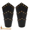 The unique design features intricate embossed patterns that reflect the artistry of medieval craftsmanship. Each detail is carefully crafted to capture the essence of the time, from the elegant scrollwork that adorns the surface to the subtle, contrasting stitching that adds a touch of sophistication. These bracers are not just an accessory; they are a statement of authenticity that will surely turn heads at your next Renaissance fair or LARP event.