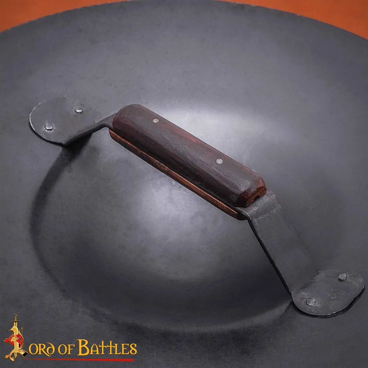 A: No. Each buckler is individually hand-forged, so small variations in rivets, texture, and finish should be expected.