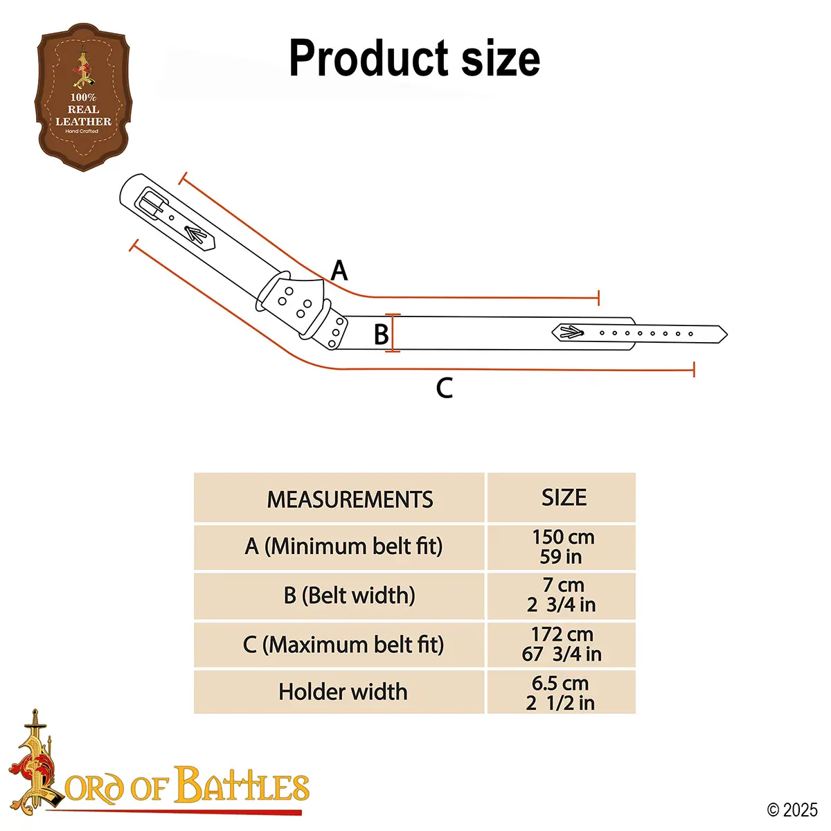 Note: Each baldric is individually handcrafted , minor variations in grain, tone, stitching, and rivet placement are natural.