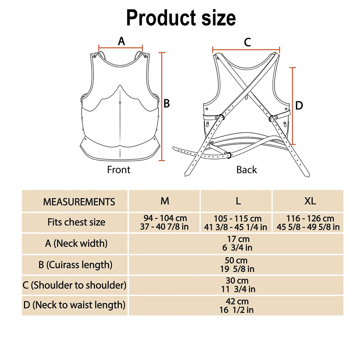 Whether worn alone over a padded gambeson or paired with backplates, pauldrons, and tassets for a full Gothic harness, this cuirass breastplate is both functional armor and an impressive display piece. Perfect for reenactments, SCA combat, LARP, and medieval collections.