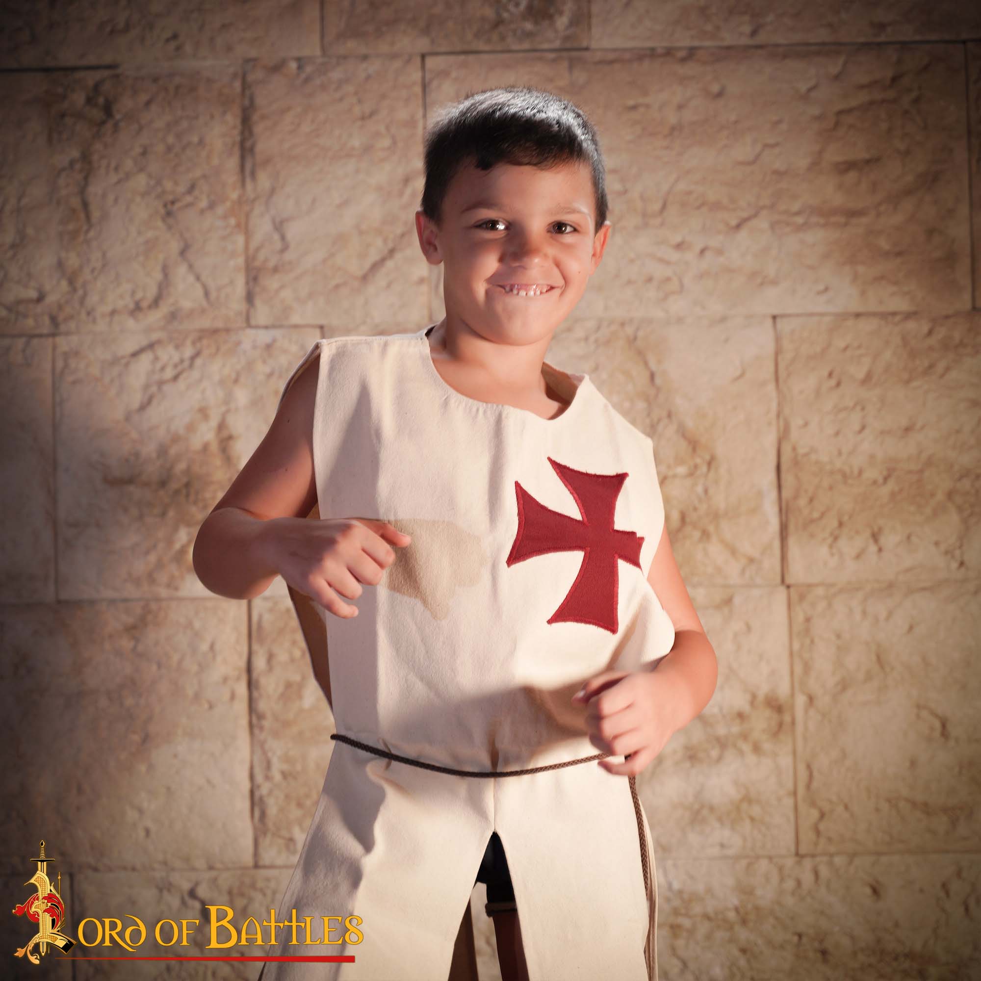 Crafted with utmost attention to detail by skilled artisans, this surcoat is made from the highest quality cotton, ensuring that it is both light and breathable. Your junior will experience unparalleled comfort during those ardent reenactments or playful adventures in the backyard. Unlike synthetic fabrics that can irritate the skin, our cotton is gentle, allowing for active movement and extended wear.