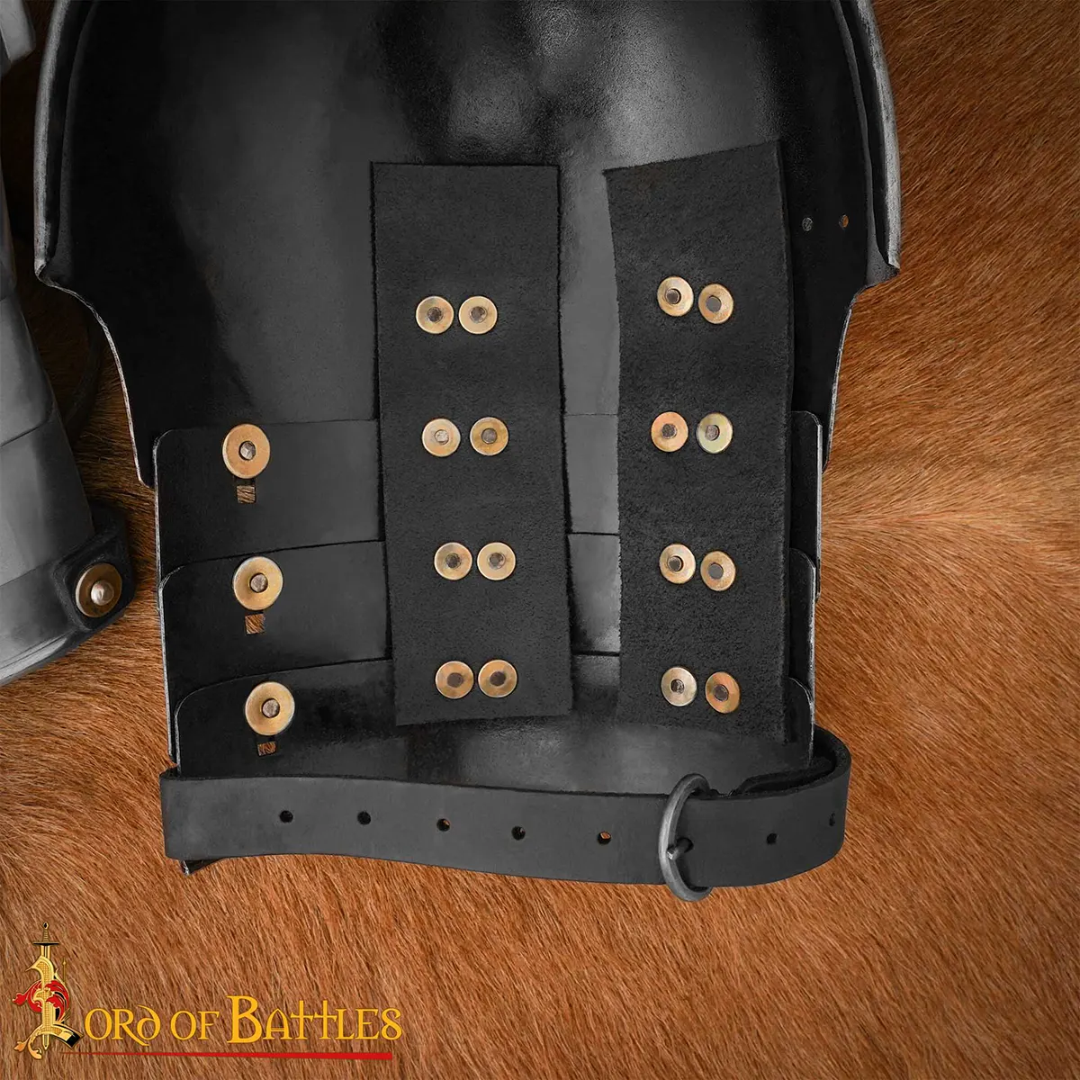 One significant advantage of these pauldrons is the small curved leather plate that comes equipped with a pair of holes, designed distinctly to let you easily attach a gorget for added neck protection. This attention to detail underlines the functional nature of these pauldrons, ensuring they serve not just as a protective gear but also as a thoughtfully designed ensemble piece.