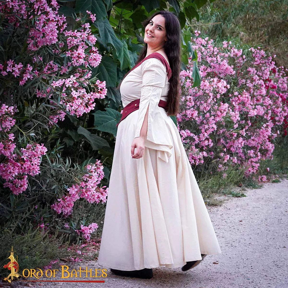 Inspired by Timeless Country Elegance: This Medieval maiden dress captures the gentle beauty and simplicity of countryside life during the Middle Ages. Inspired by historical rural garments, it has a graceful look which is suited for Renaissance fairs, medieval festivals, historical themed and fantasy events. The design shows classic medieval dress clothing, mixing comfort with period-inspired charm for an authentic look.