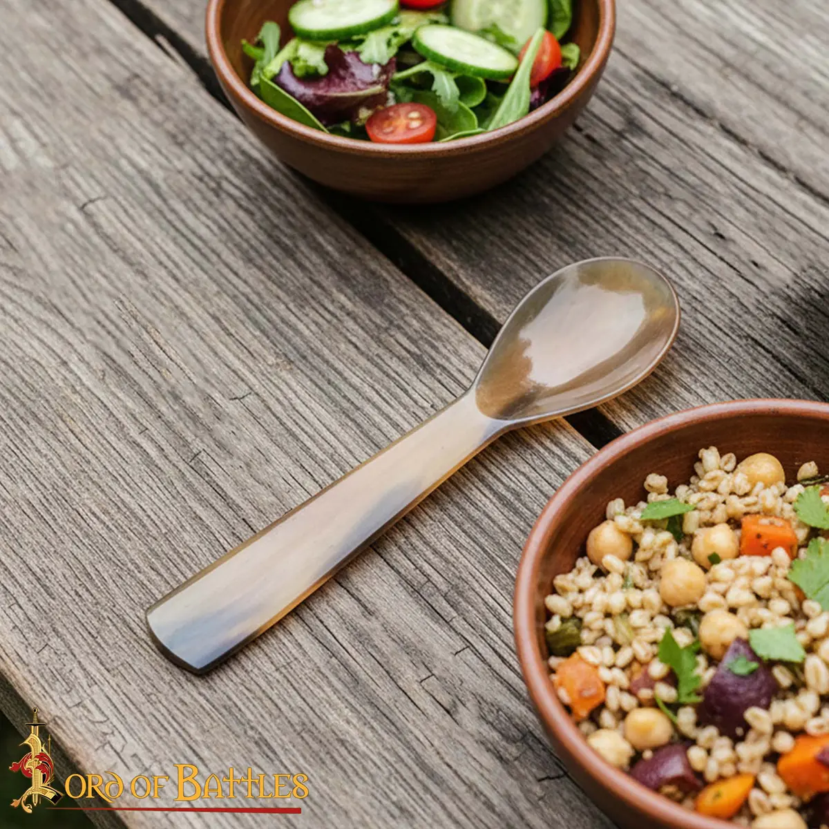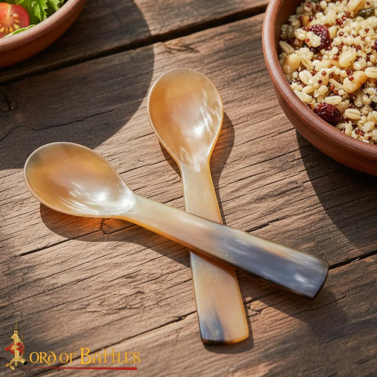 The Medieval Authentic Horn Spoons Set truly elevated our family dinner last weekend. Each spoon feels solid and well-crafted, and I loved how they added a touch of elegance to our meal. Used them for serving a homemade stew and they held up beautifully, with no scratching or signs of wear. The only minor flaw was that they can be a bit tricky to clean, but a gentle wash does the trick!