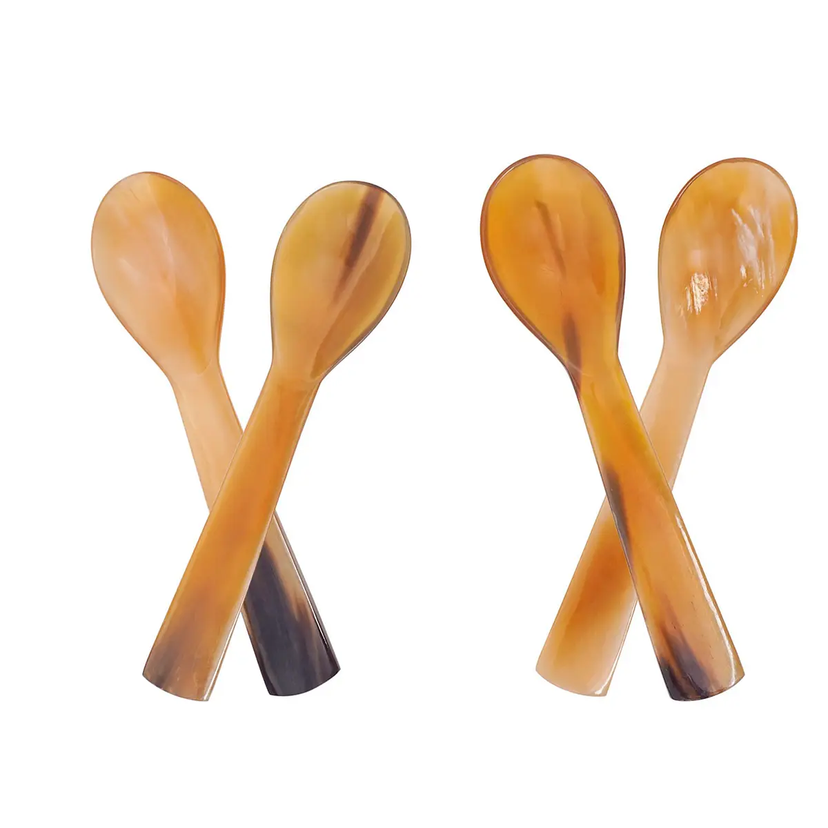 I used these beautiful ox horn spoons at a family gathering last weekend, and they truly elevated the dining experience. Each spoon is not only aesthetically pleasing but also functional, making them perfect for serving dishes like creamy guacamole and sweet desserts. Their unique craftsmanship caught everyone’s attention. I noticed how the spoons held up well, even when stirring through thicker dishes. They feel sturdy in hand, exhibiting excellent durability. Cleaning them was a breeze too; a quick wash with soapy water left them looking pristine. One of the only drawbacks was a minor scratch that appeared on one spoon after a bit of rough handling, but it didn’t significantly detract from their charm. Overall, these spoons have added a touch of elegance to our meals and served as a great conversation starter. I’ll definitely use them for future events, and I appreciate the ethical sourcing as well. The horns have a beautiful, organic finish that I find appealing, making them a delightful addition to any table setting. Anyone looking for a unique dining upgrade should consider these spoons!