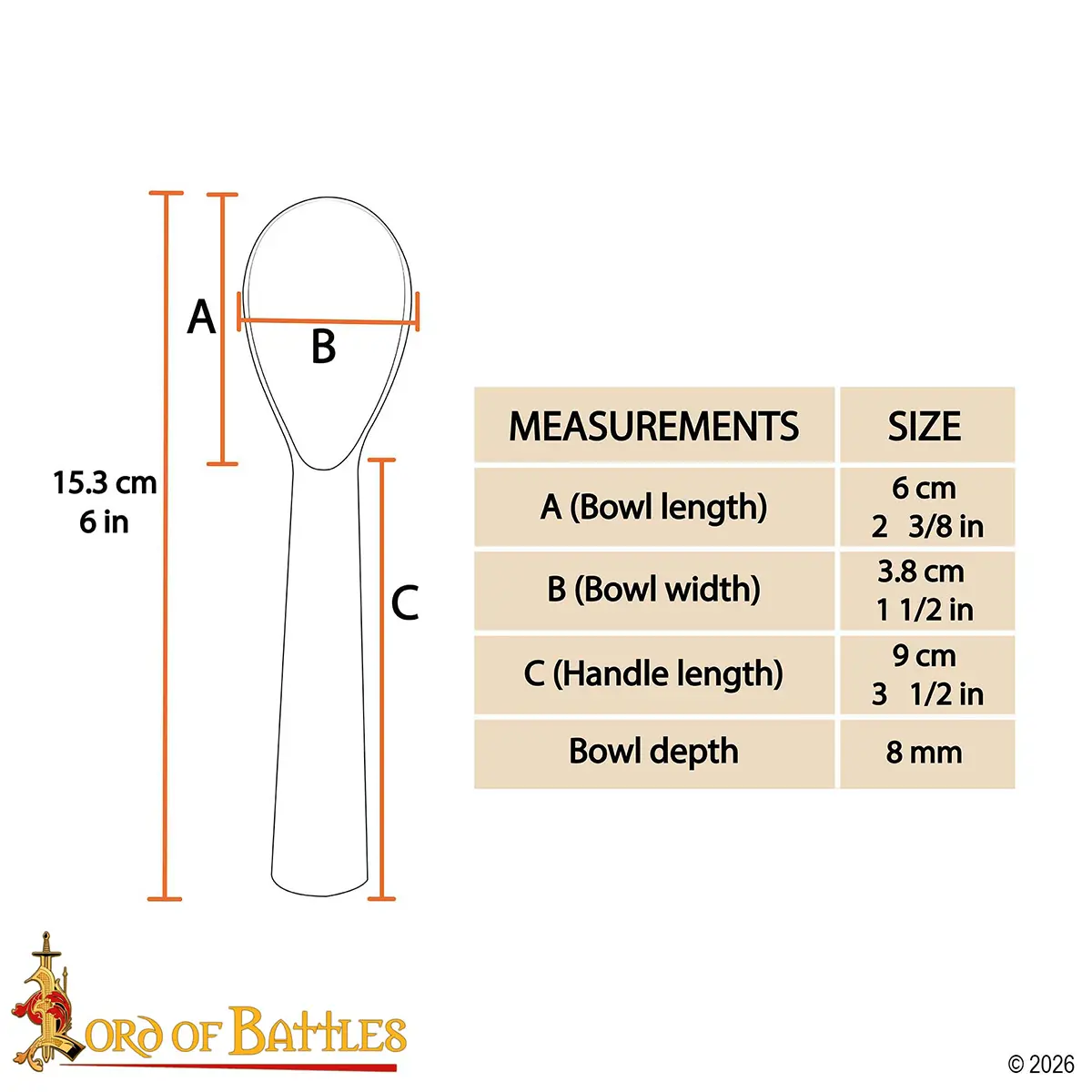 Each spoon is carefully polished to a smooth, glossy finish. This makes it pleasant to hold, lightweight in the hand and easy to use. The smooth surface also helps with cleaning and everyday use. These spoons are perfect for reenactment dining, themed events, rustic table settings, or anyone who enjoys historical-style living.