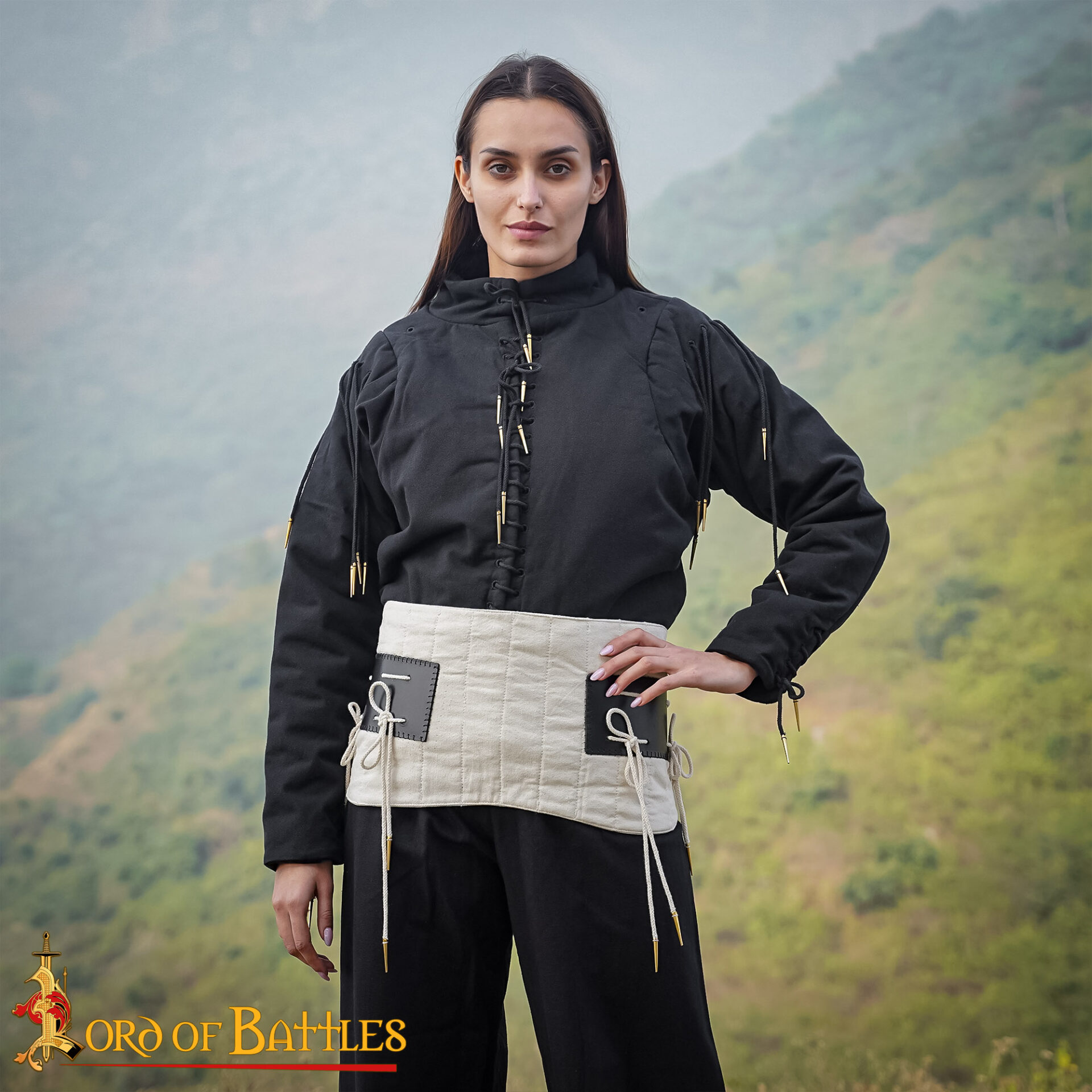 Constructed from tough natural cotton , with 3 layers and stitched with vertical channels, Medieval Padded Arming Belt balances weight distribution with freedom of movement. Its sturdy front-lace system and reinforced side slits provide secure tie-points for hose or harness, reducing chafing and improving battlefield readiness.