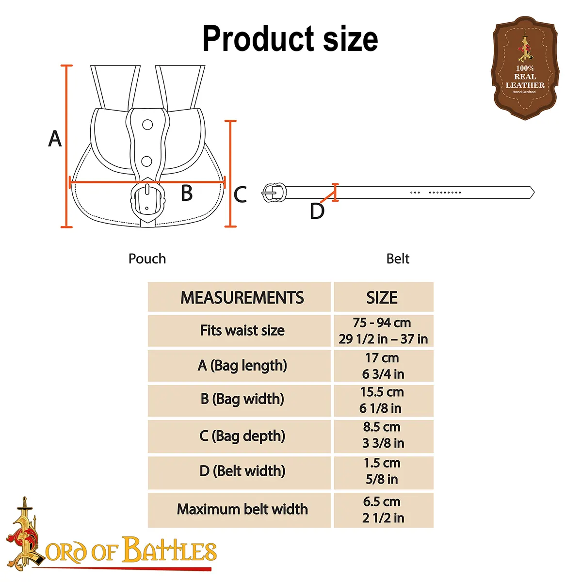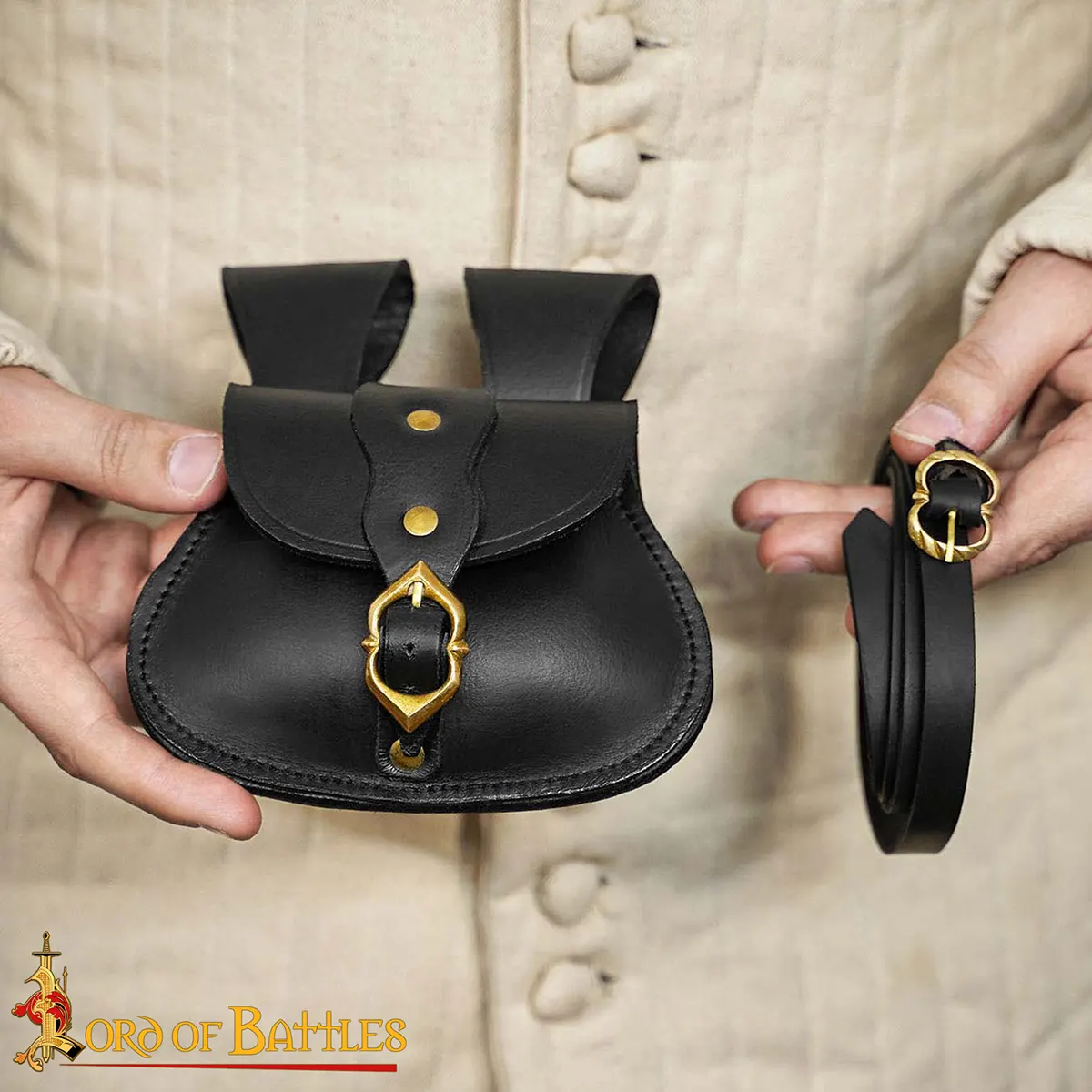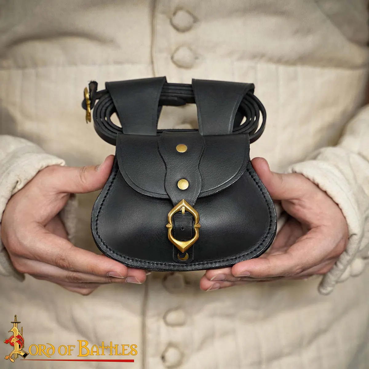 Every detail is made for strength and authenticity, from the sturdy stitching to the bold, compact shape that represents the genuine medieval belt bags. The best part is that it arrives ready to wear with its own matching leather belt, so you can gear up instantly without extra purchases.
