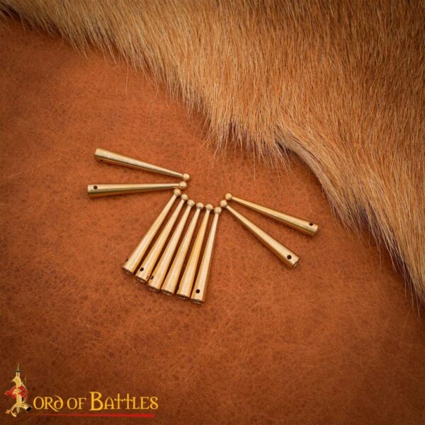 Imagine yourself at a medieval reenactment or renaissance fair, confidently wearing a costume that reflects true historical accuracy. Our Medieval Brass Aiglets not only serve a crucial functional purpose of holding laces securely but also add a stunning aesthetic appeal to any garment. The rounded tips provide a sophisticated finish, enhancing your medieval tunic or costume with an air of elegance.