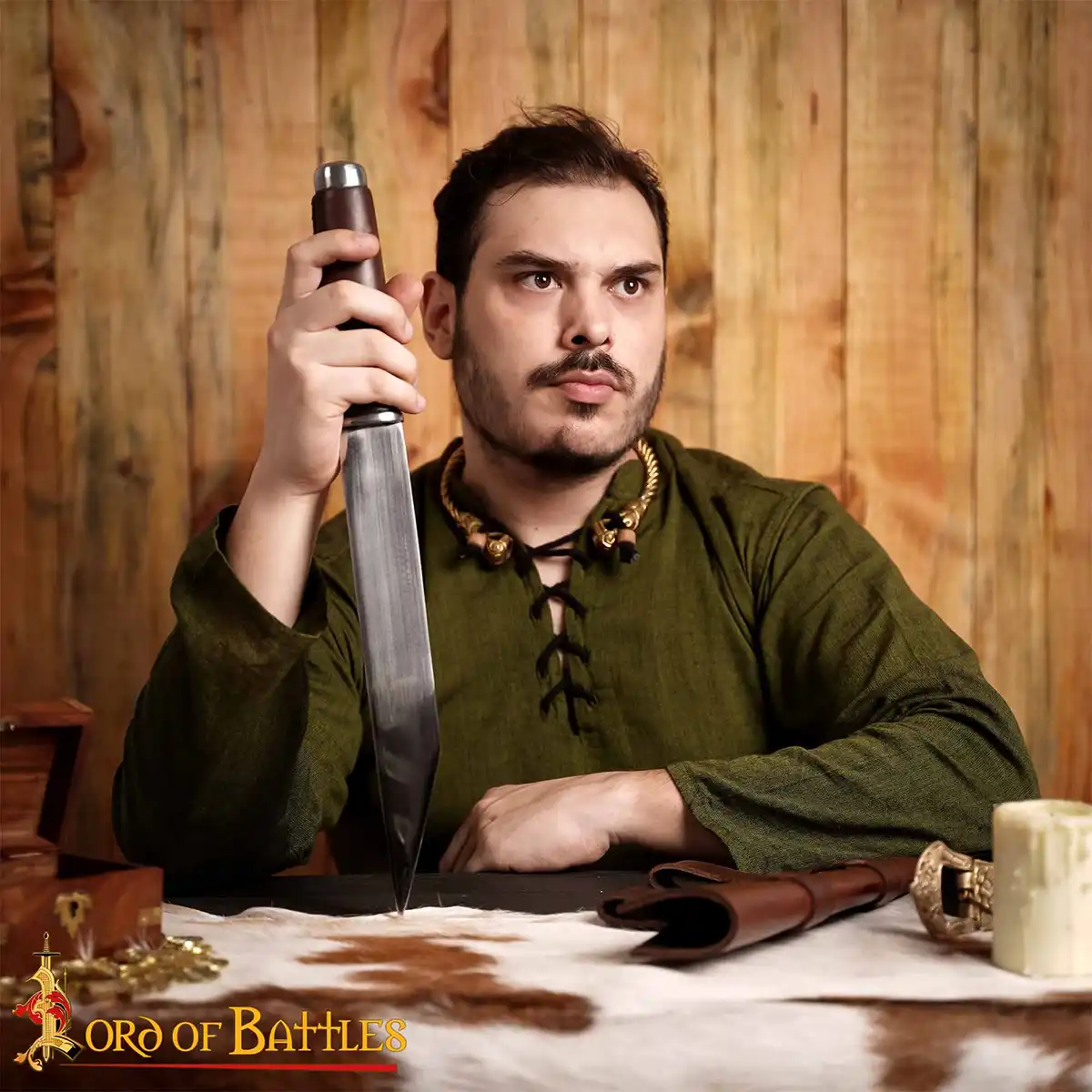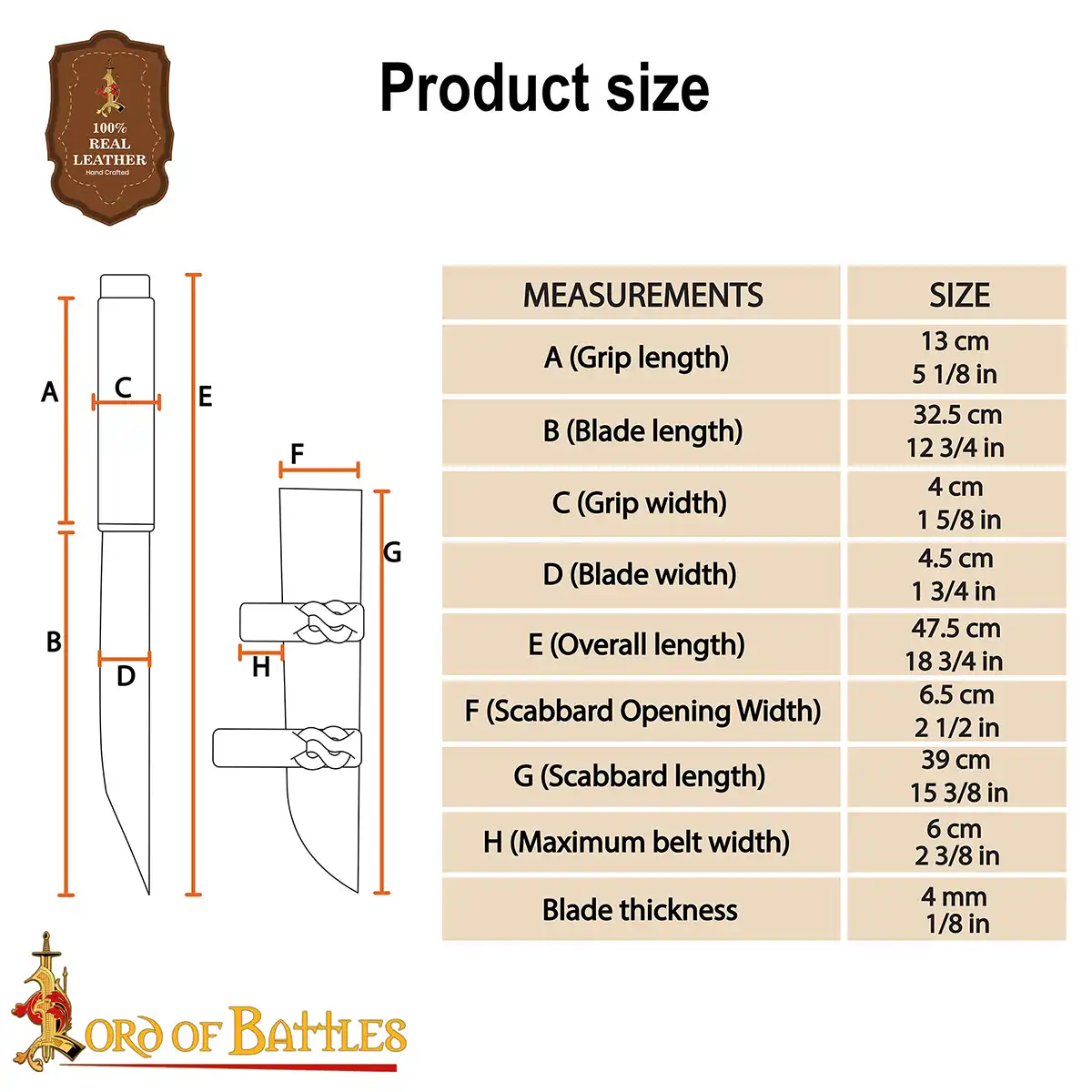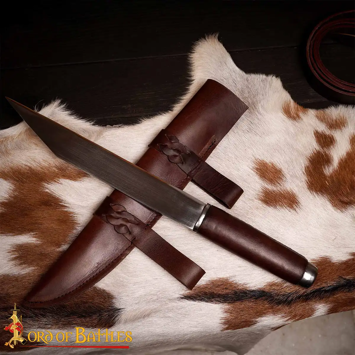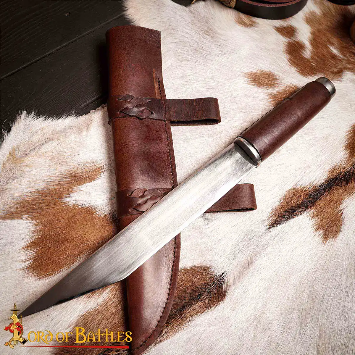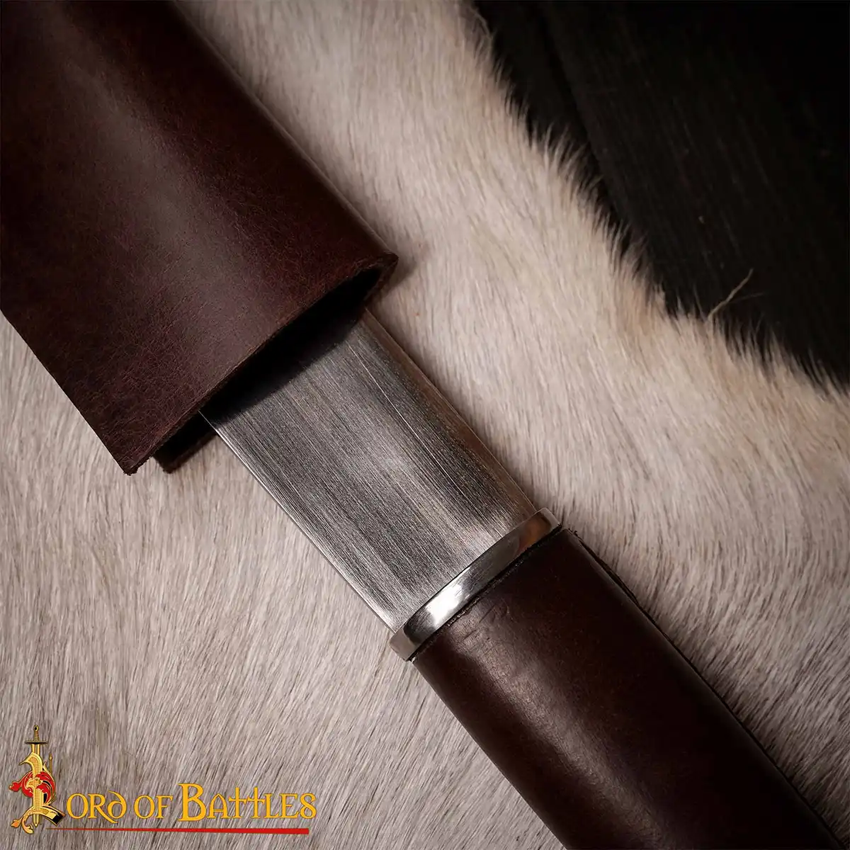 Each seax comes with a handmade leather scabbard, complete with belt loops decorated with knot work designs inspired by Viking-age art. This ensures the dagger can be worn securely at the hip during reenactments, Renaissance fairs, or LARP events.