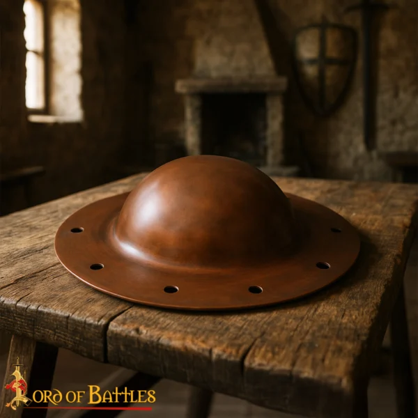 What sets this boss apart is not only its strong 14-gauge thickness—ideal for real combat simulation and not merely decorative use—but also its authentic design and careful craftsmanship. The copper-plated surface is polished to an eye-catching sheen while preserving a rugged medieval feel, ensuring that it fits right into historical kits or museum-grade displays.