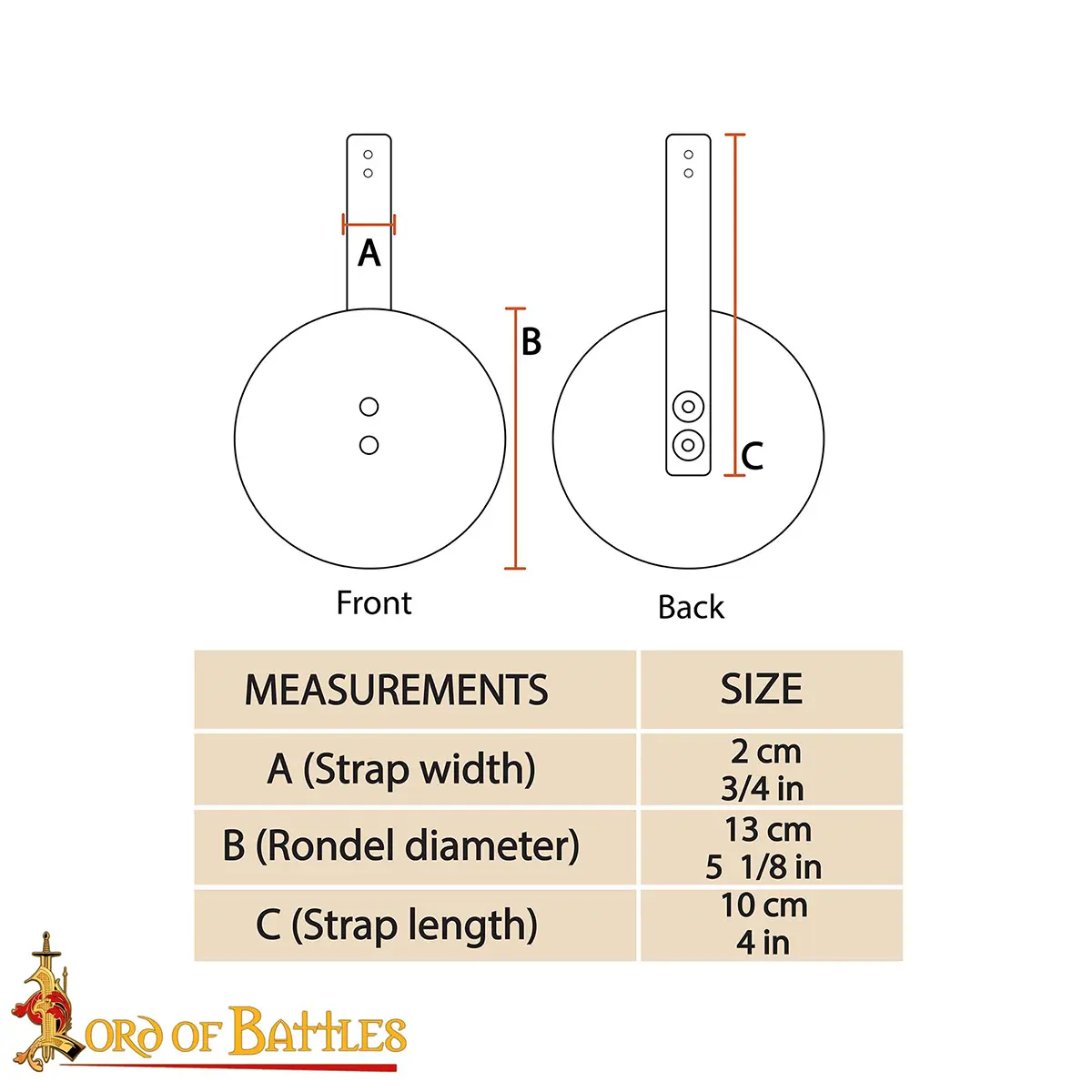 As these rondels are hand-crafted, minor variations in size, rivets, or finish may occur, adding to their authentic medieval character.
