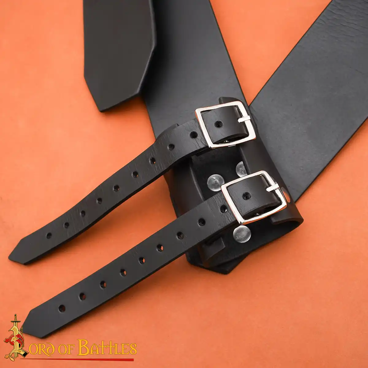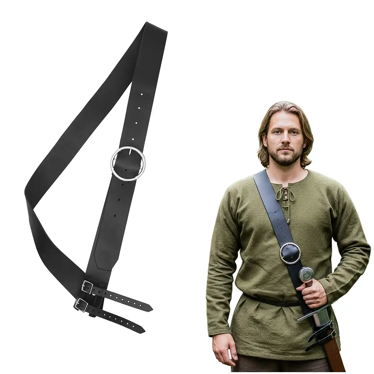 Prepare to elevate your medieval attire with the Medieval Sword Baldric in black, designed for those who appreciate both authenticity and style. This premium leather baldric effortlessly combines functionality with an impressive aesthetic, ensuring your sword remains safely secured at your side, even when it’s not in use.