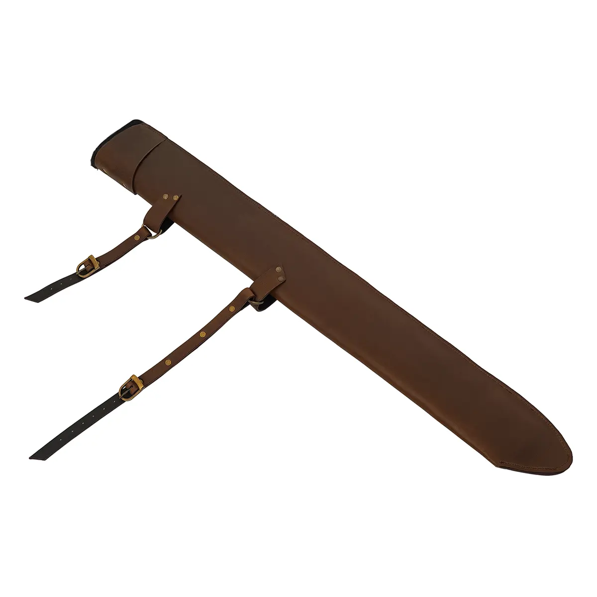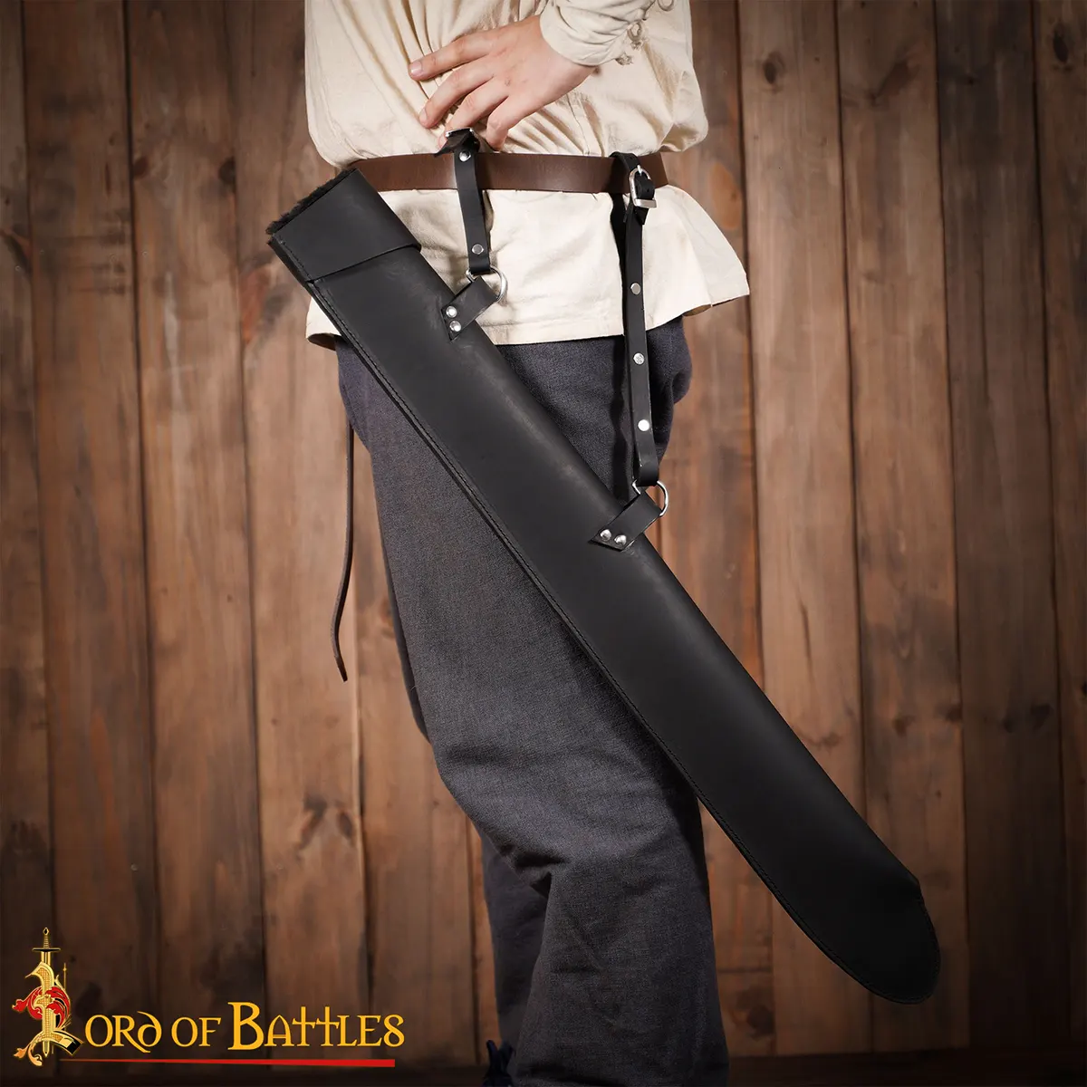 Its narrow, elongated design supports full-length swords while keeping a streamlined look at your side. A must-have for warriors seeking both form and function on the battlefield—or at the next fair.