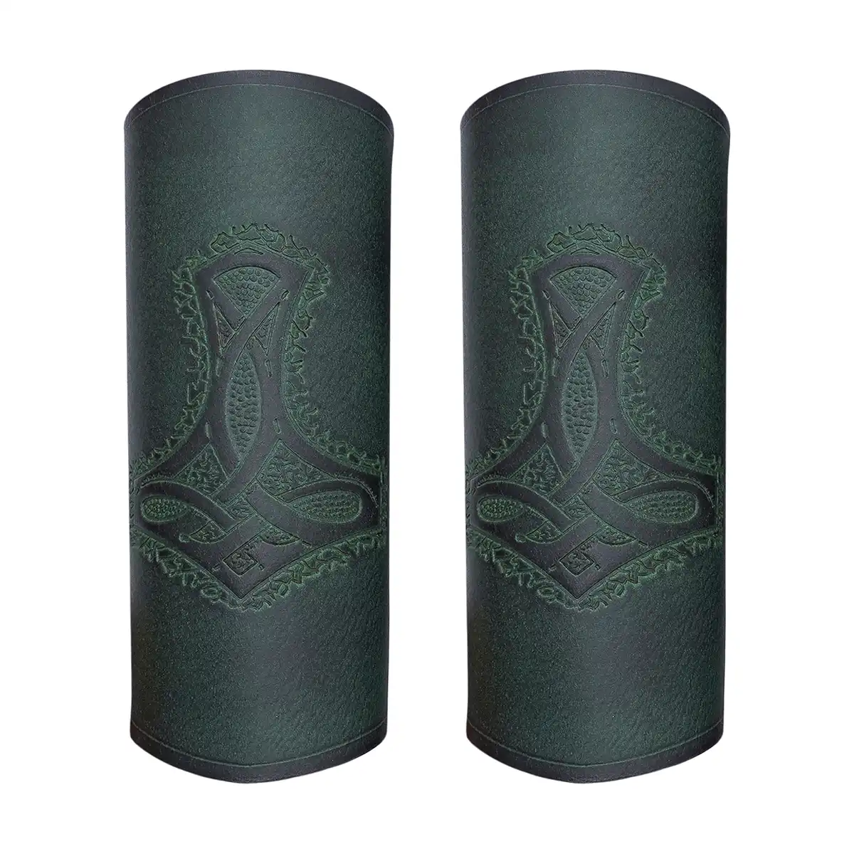 Introducing the Mighty Mjolnir Genuine Leather Bracers – a remarkable fusion of style and durability, designed for those who seek both elegance and strength in their accessories. Handcrafted from premium quality genuine leather, each pair of bracers is meticulously crafted to ensure maximum comfort and longevity. The rich texture of the leather not only provides an eye-catching aesthetic but also enhances its ruggedness, making it perfect for a variety of occasions.