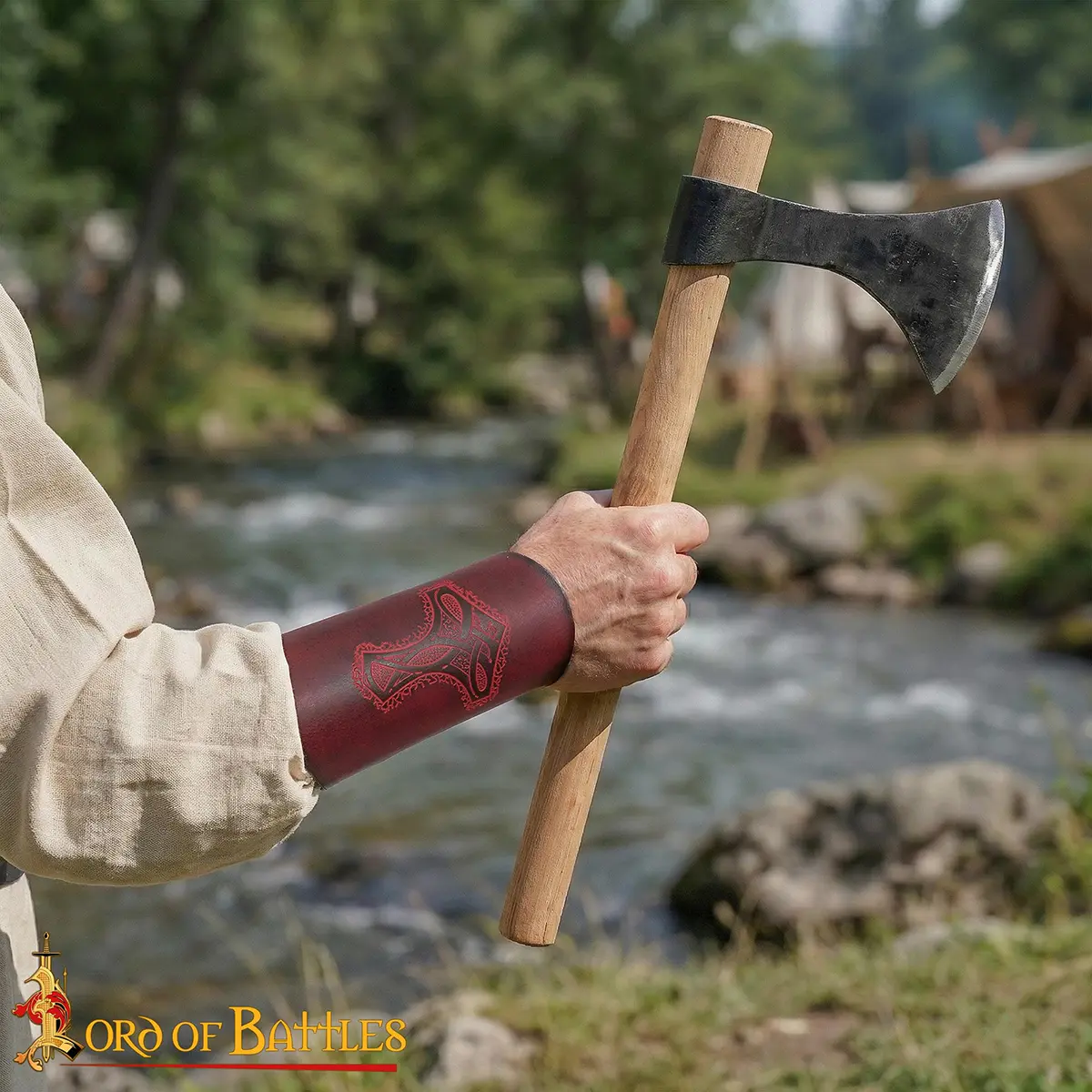 The Mighty Mjolnir Bracers exceeded my expectations! During a recent Renaissance fair, I wore them all day and received countless compliments. The leather feels fantastic, and the intricate stitching adds a nice touch. They held up wonderfully, even when I was participating in a few archery demonstrations. I was worried about the durability, but they didn’t show any signs of wear after being pulled and flexed during active use. The adjustable strap made fitting easy, ensuring they stayed securely on my arms without feeling restrictive. Plus, the leather not only looked great but also breathed well, making it comfortable, even under the sun. My only minor flaw was that the color seemed slightly lighter than what was pictured online, but it ended up aging beautifully and developed a rich patina after a few uses. Overall, these bracers are an eye-catching accessory that balance functionality with style, making them a worthy investment for anyone wanting to add a touch of warrior elegance to their outfit!