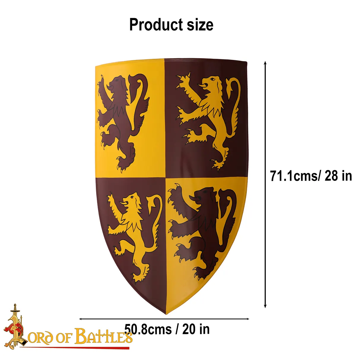 The shield can be used as a lion shield for themed costumes, a Welsh shield for displays, or a rampant lion shield to complete medieval armor look. The Lion rampant shield is ideal for anyone who loves medieval history, Welsh culture, or bold heraldic designs.