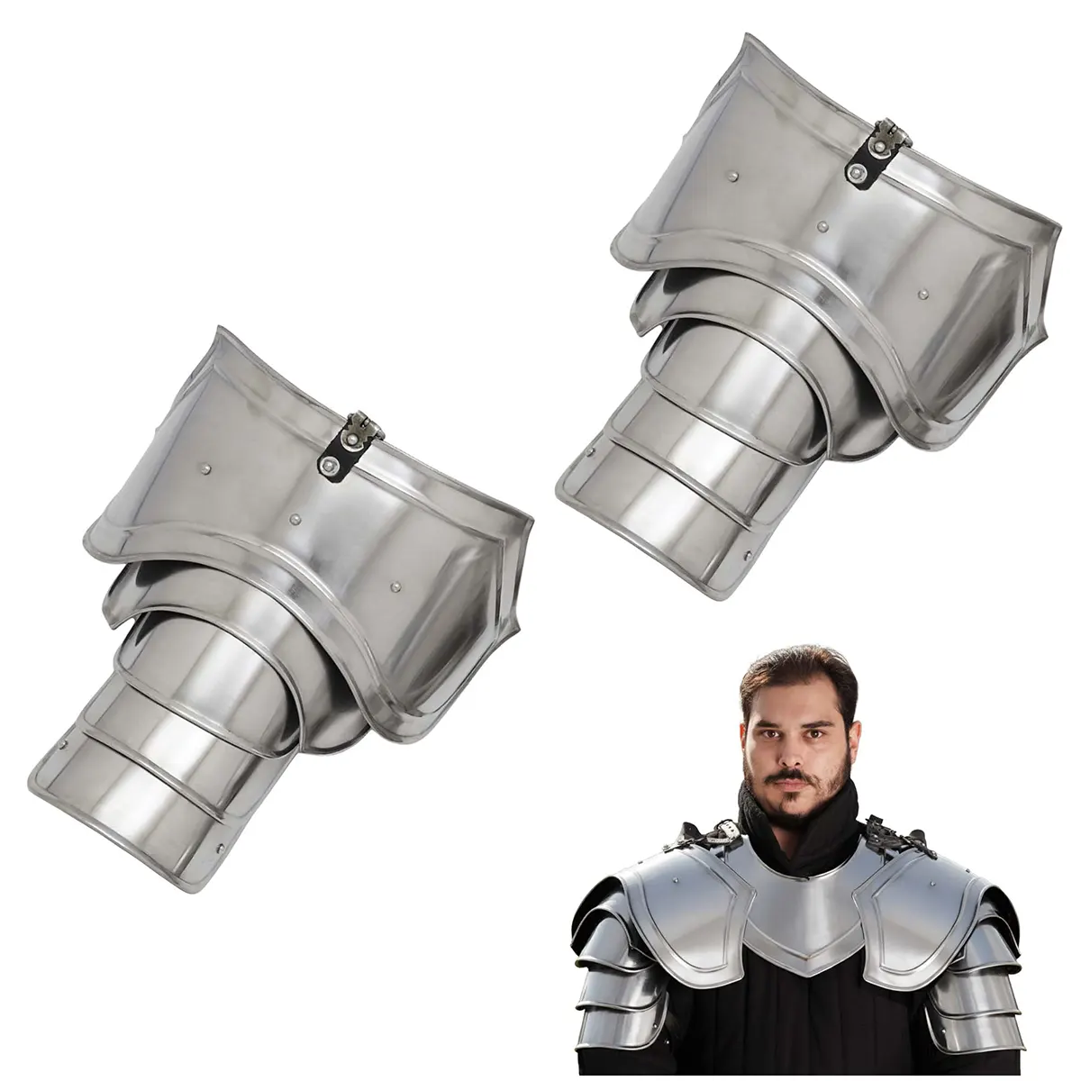 Picture yourself donning these sturdy yet lightweight pauldrons, their elegantly sculpted contours allowing for the dynamic movements that the battlefield demands. Whether you are a knight in a LARP event, an enthusiast at medieval fairs, or simply wish to enhance your collection, these pauldrons are your perfect companion. The handcrafted nature of each piece ensures that no two are exactly alike, giving you a unique piece of art that embodies the spirit of medieval valor.