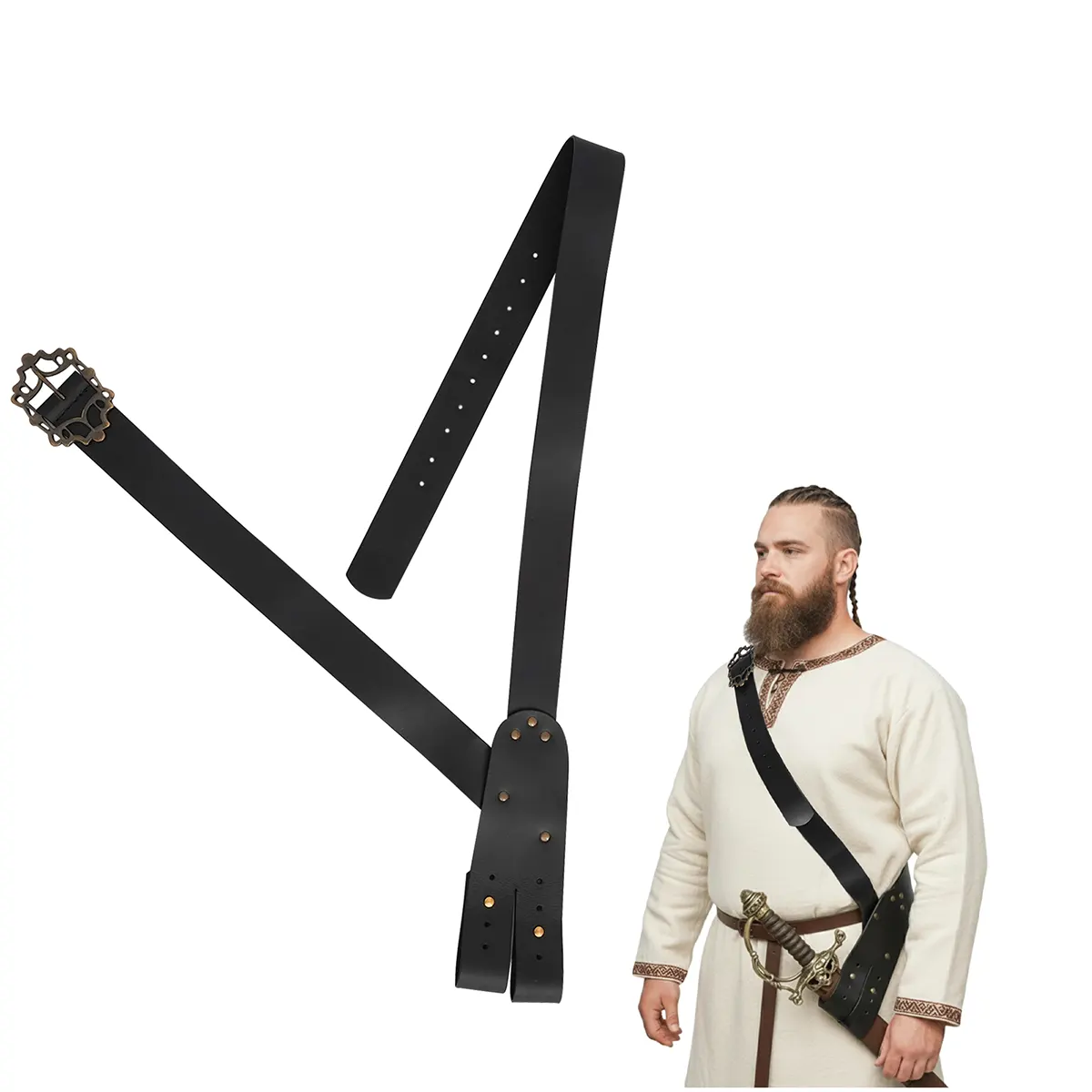 Perfect for LARP, cosplay, stage performance or themed events, this baldric sword holder ensures comfort while making your costume truly stand out. More than an accessory, this Leather sword baldric becomes an important utility item.